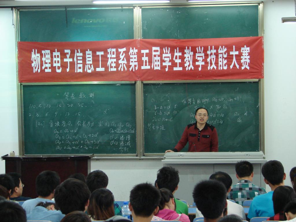 为了提高员工的综合素质,提升员工对所学知识的应用能力。4月17日下午,物理与电子信息工程系在多媒体四教室举办了第五届员工教学技能大赛。系上老师侯茹、袁训锋、杨滨峰、李磊、陈倩以及员工代表担任了本次比赛的评委。
