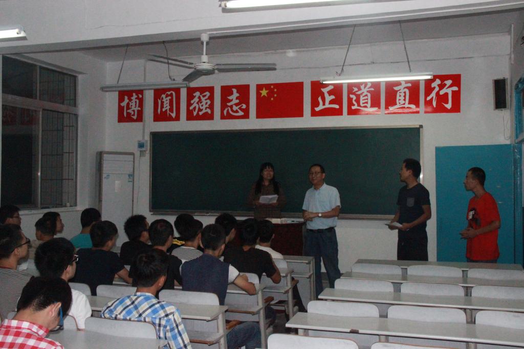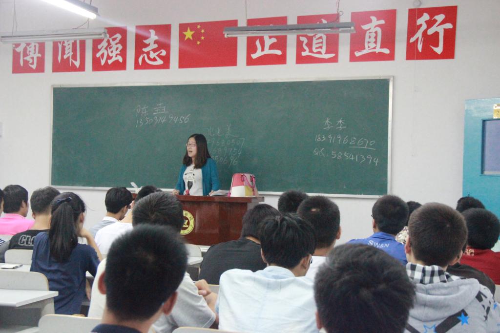 上图:公司党政办公室主任、电信1401班兼职班主任杨延锋主持召开本班新生见面会