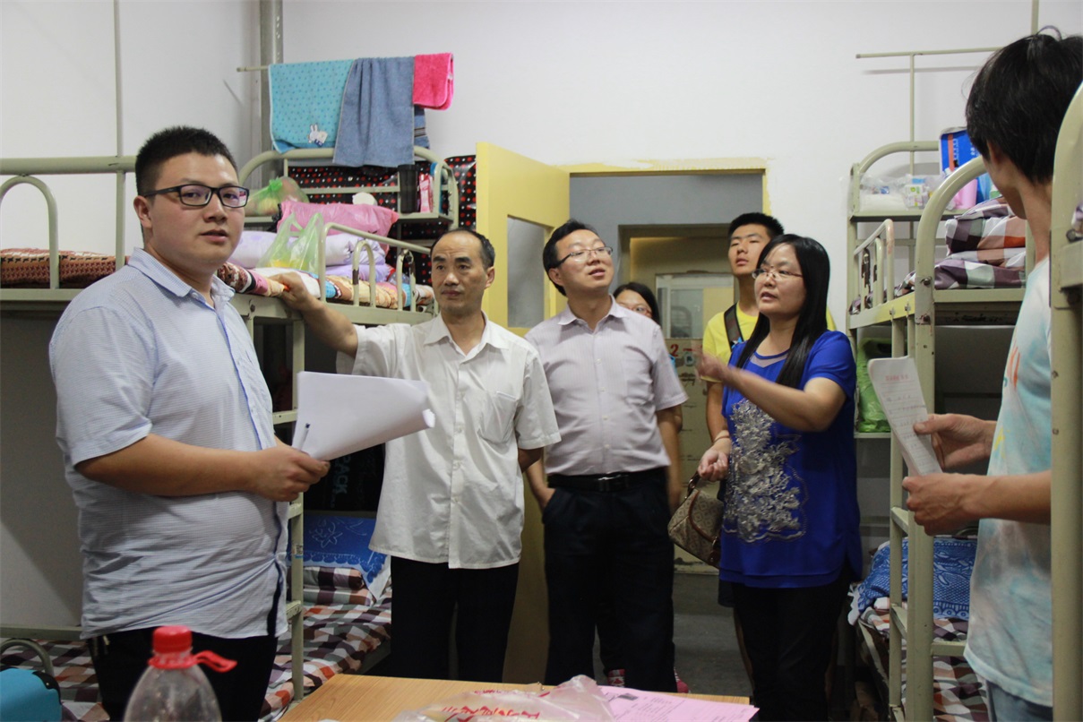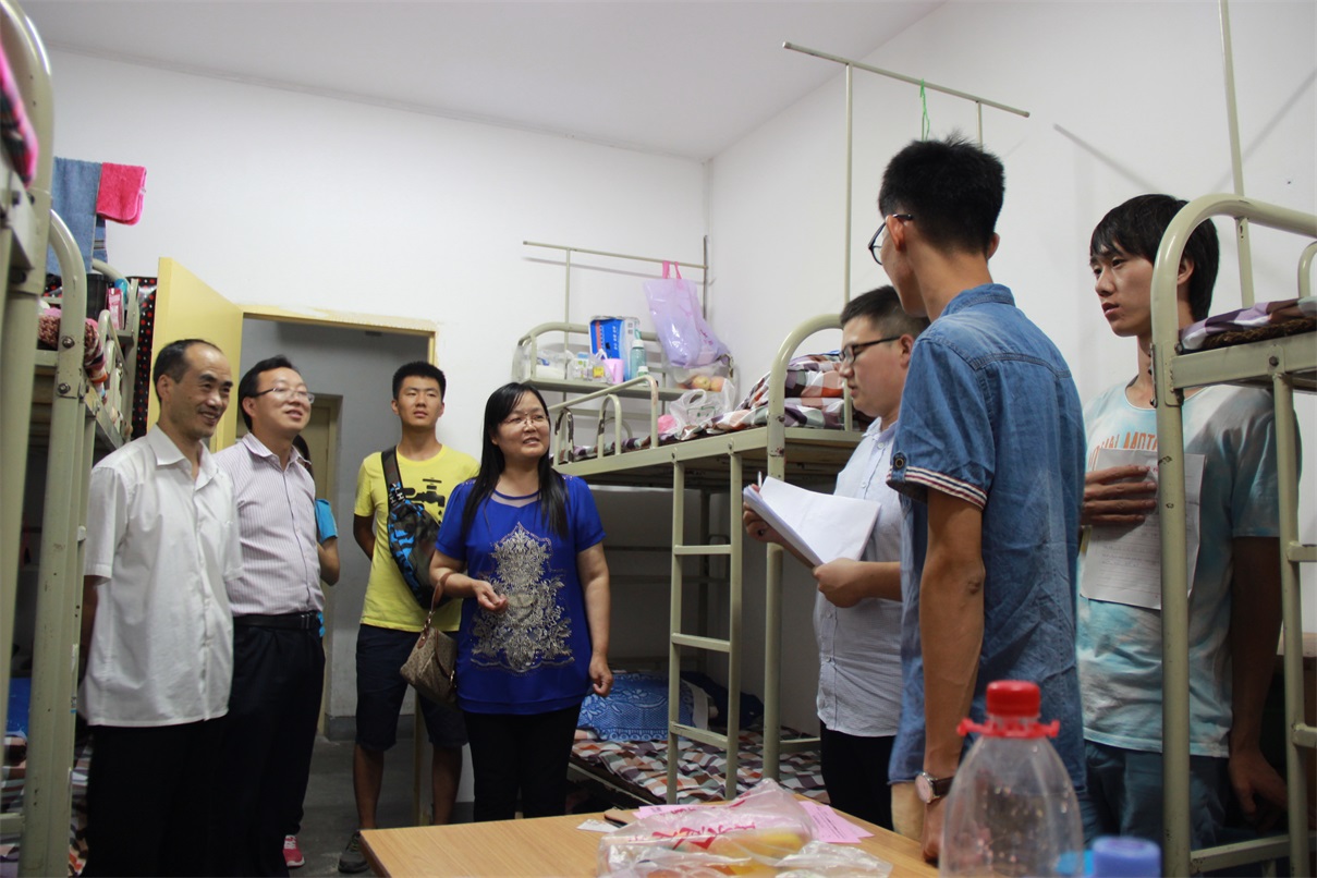 上图:太阳成集团tyc122cc院系领导和辅导员深入员工宿舍看望新生