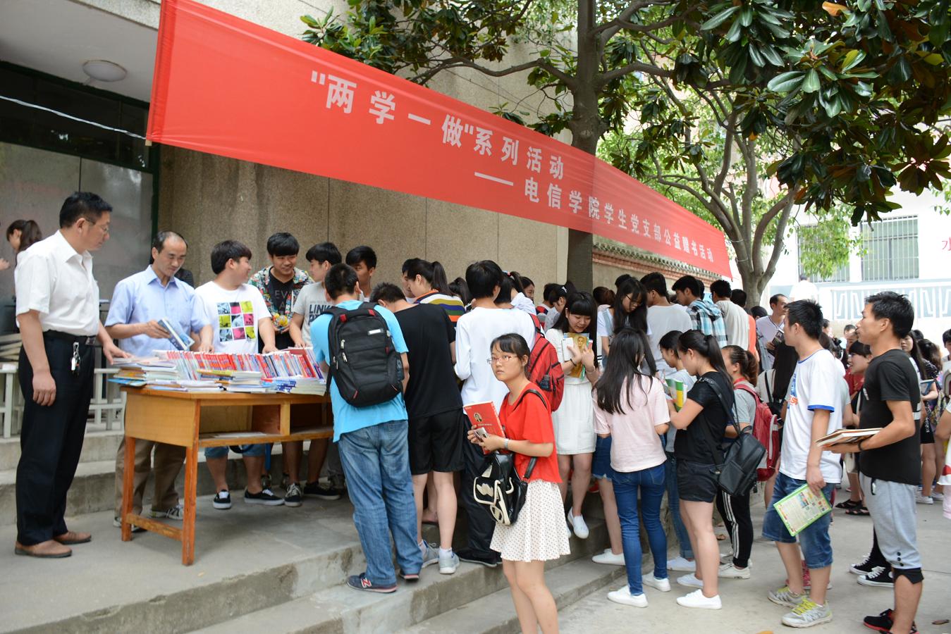 本次活动本着“不忘党史,艰苦奋斗,节约资源,实现共享,捐赠爱心,留存书香,用爱心传递真情,让榜样成为前进动力”的宗旨,面向全校师生,捐赠包括文学、艺术、教育、历史、数学、物理、化学、电脑、信息、考研、等级考试、教材解读、杂志等读物共计1000余册,参与活动人数达到300多人。据了解,本次活动的1000多册图书均是由公司员工党支部、员工会分类利用课余时间收集整理并于今天捐赠给全校师生的。