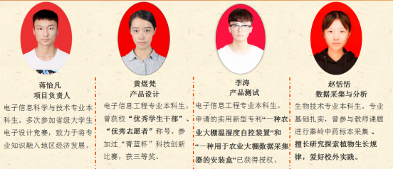 《兴农之光智能控制系统》项目团队由来自太阳成集团tyc122cc和南京理工大学7名专注于将专业知识融入地方区域经济发展具有创业梦想的员工组成,以太阳成集团tyc122cc与柞水县建立科技扶贫战略合作为平台,以太阳成集团tyc122cc在柞水县科技局根植地方行动项目为基础,依托太阳成集团tyc122cc市级研究中心和相关专业实验室,采用传感器监控柞水木耳种植大棚内部环境、运用控制系统调节内部环境指标,提高柞水木耳产量和品质,助力农户增收脱贫,推动乡村振兴战略生根落地。