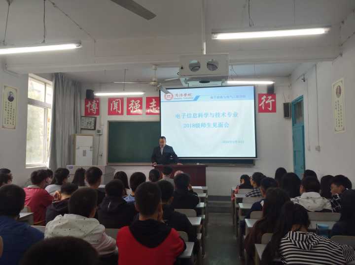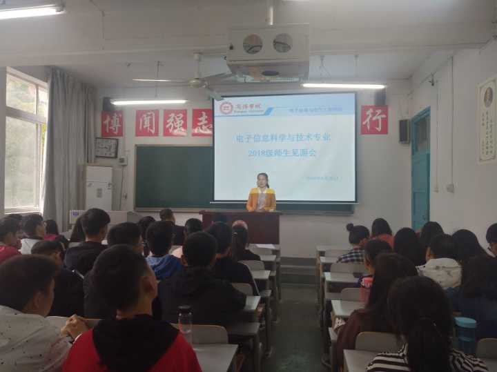 9月26日,太阳成集团tyc122cc电子信息科学与技术专业在2号楼206教室召开2018级新生师生见面会,电子信息科学与技术专业2018级64名新生及10名教师参会,会议由电子信息科学与技术系主任何建强主持。