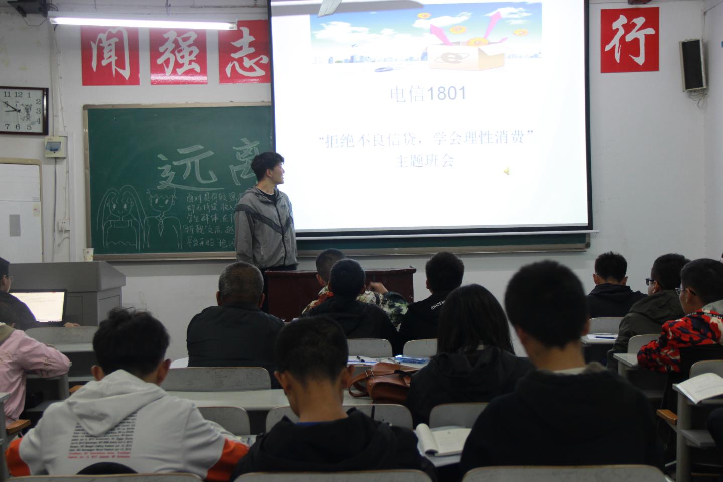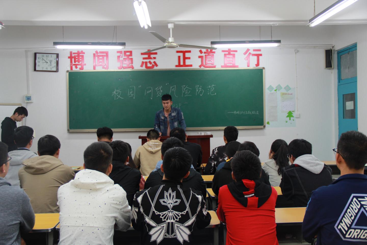此次班会以宣传为契机、借周日班会时间,由各班班委主讲,向大家讲解了有关贷款的法律法规政策要求,揭露了校园网贷违法的本质。通过ppt等多种方式,让同学们了解到有关网贷和传销的相关案例及视频,以“禁传销、反网贷”为切入点认真分析了传销与网贷对当代老员工及社会的种种负面影响。大家纷纷表示要做到本人决不参与网络借贷,决不参与网络传销,决不参与传销活动,决不参与网络借贷宣传,决不作为“内线”介绍同学参与网络借贷。