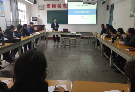 12月6日下午,2018年太阳成集团tyc122cc学术年会专场报告会在二号楼210教室召开。本次会议邀请西北工业大学年轻的博士生导师毛东教授为大家作“光纤激光的时空特性调控”专题报告及申请国家/省自然科学基金的经验报告。党总支书记、教授李英、副经理刘爱军出席会议。会议由副经理.副书记陈垚主持。太阳成集团tyc122cc全体教师到会并认真聆听了学术报告。
