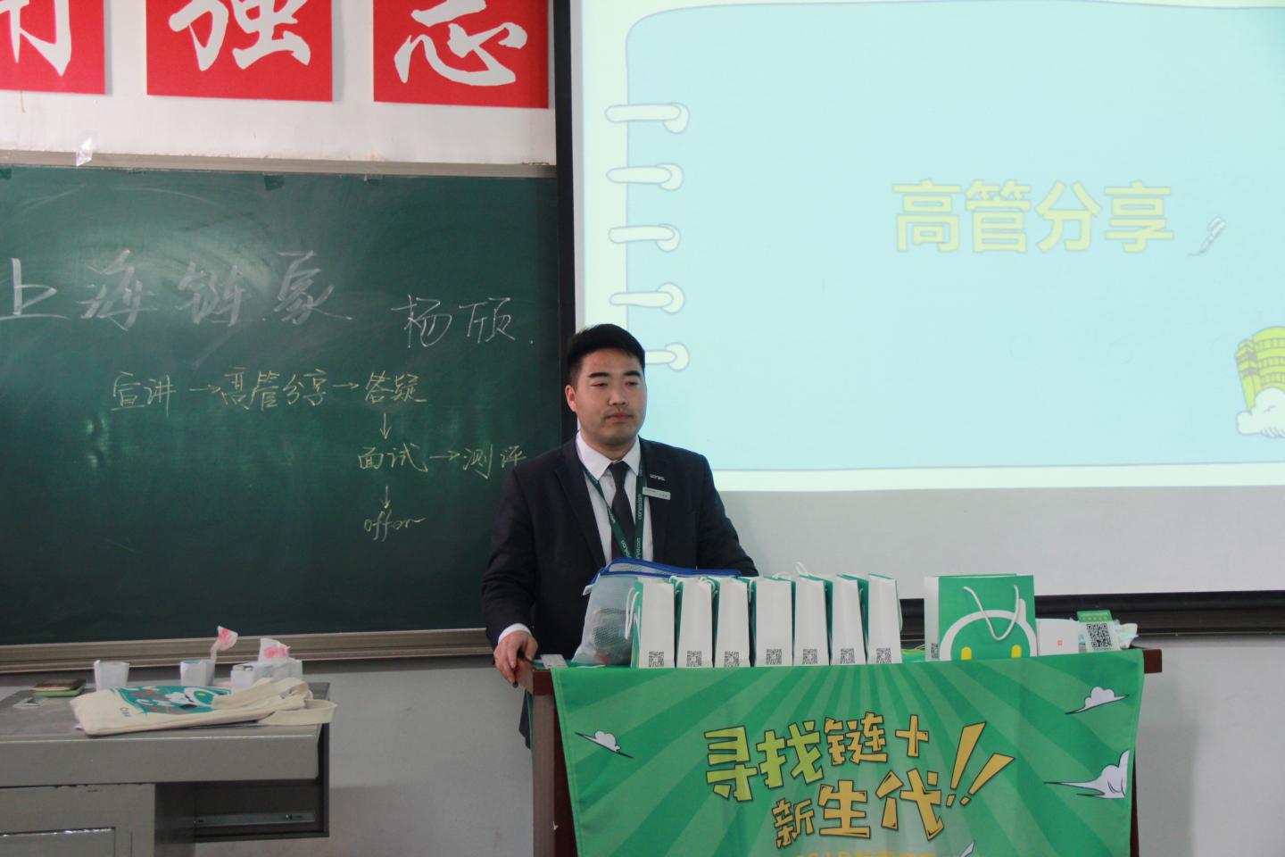 宣讲会上,人事部杨经理在开场白中,以上海链家主打的工作理念“团队进取”博得了毕业生的认同。随后,人事专员杨颀结合PPT、视频等更加直观的媒体进行讲解,向公司毕业生介绍链家公司工作人员的日常工作以及公司福利,并以大数据为参考,着重强调了上海链家公司庞大的规模如何有效的发展,新入职的老员工就业前景及晋升通道广阔等。杨颀现场与员工进行了深入的探讨和交流,有多名员工初步达成了就业意向。