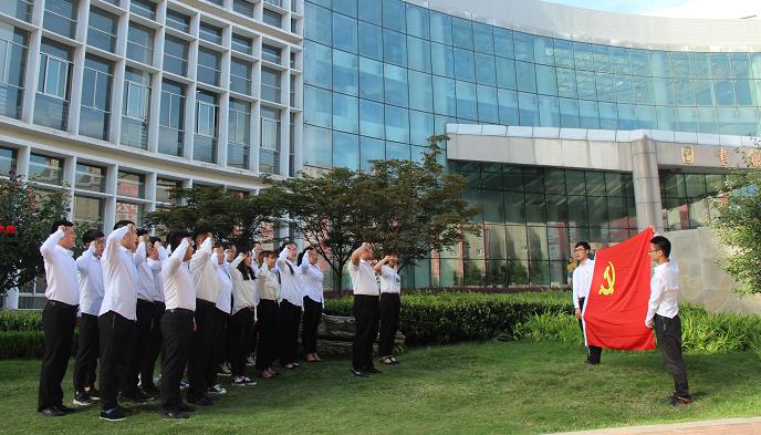 7月1日,在喜迎建党98周年之际,公司员工党支部组织公司新发展的26名中共预备党员在公司图书馆前举行了庄严的入党宣誓仪式。公司员工第一、第二党支部书记任艳、唐龙龙共同为参加宣誓的预备党员领誓。