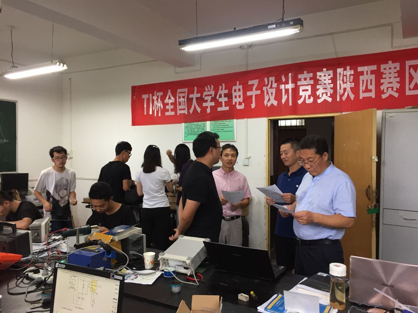由教育部、信息产业部组织的2019年全国大学电子设计竞赛于8月7日8:00至8月10日20:00(共四天)举行,太阳成集团tyc122cc经过培训、训练,最终选拔了15名员工组成5支参赛队代表公司在太阳成集团tyc122cc电子创新实验室和电气仿真实验室进行陕西赛区比赛。