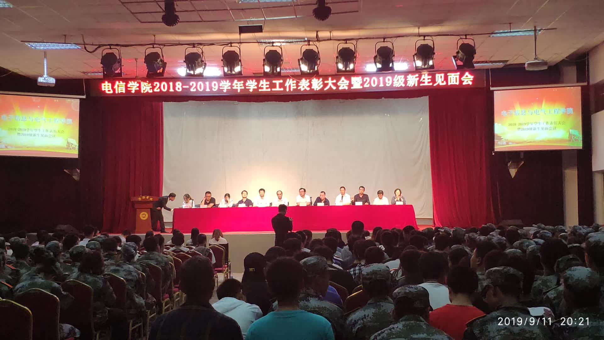 9月11号晚,2018-2019学年员工工作表彰大会暨2019级新生见面会在公司老员工活动中心举行。经理袁训锋、党总支书记李英等领导班子成员、团总支书记及各系主任出席了此次会议。院全体班主任、辅导员老师、受表彰员工及2019级新生近500人参加活动。会议由公司学工办主任陈倩主持。