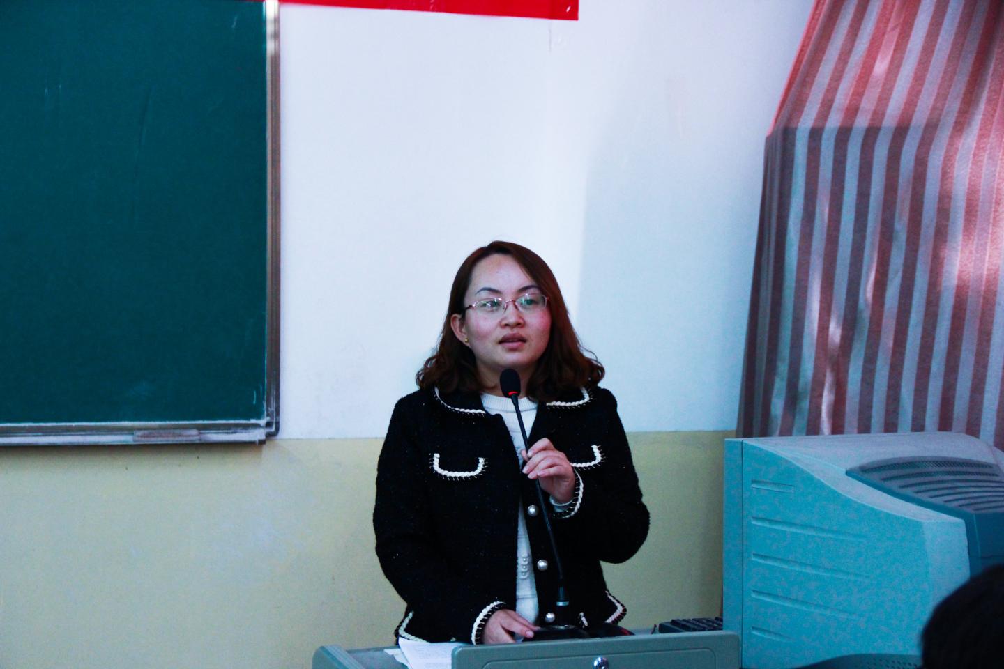 会议伊始,陈倩以“做一名优秀的员工干部”为主题为员工干部做培训。她讲到,作为班团干部在员工工作中要起到带头作用、助手作用、桥梁作用、凝聚作用、服务作用,要严于律己,无私奉献,做好老师的助手、同学的旗帜。沈光美对与会同学提出几点期望,她说到,作为班团干部要树立坚定信念、爱国爱校,要坚持公平公正,增强责任意识、自觉服务同学,要学会明辨是非、拒绝发表不正当言论。