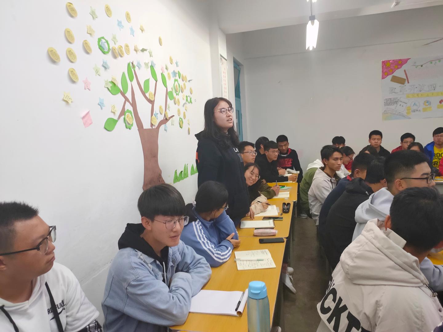 首先,李娜同学从单词、阅读、口语等方面详细介绍自己学习英语的方法,为大家英语课程学习和英语四级考试提供可以借鉴的经验;巩若琳同学从认真做笔记、独立完成作业、合理规划学习任务、适当进行题目训练等方面详细讲解高等数学满分的成功秘诀,为大家打好数学基础提供了具体的方法;杨化俊同学从创新创业概念、创新创业途径、创新创业要素等环节进行了深刻的阐释,并为大家展示了自己电子设计作品,为激发大家的专业学习兴趣、提高专业认同感提供了准确的途径;王磊同学从学习与工作的关系、如何协调学习与工作的冲突进行清晰的解读,为大家工作和学习厘清了思路;张娜老师从课堂学习和课外学习两个方面,深刻阐述老员工活究竟该如何度过。接着,进入师生互动环节。叶航、李佳乐、孙瑞、刘正一等同学积极提出自己在学习生活方面存在困惑与疑虑,老师与学长学姐进行热心解答。