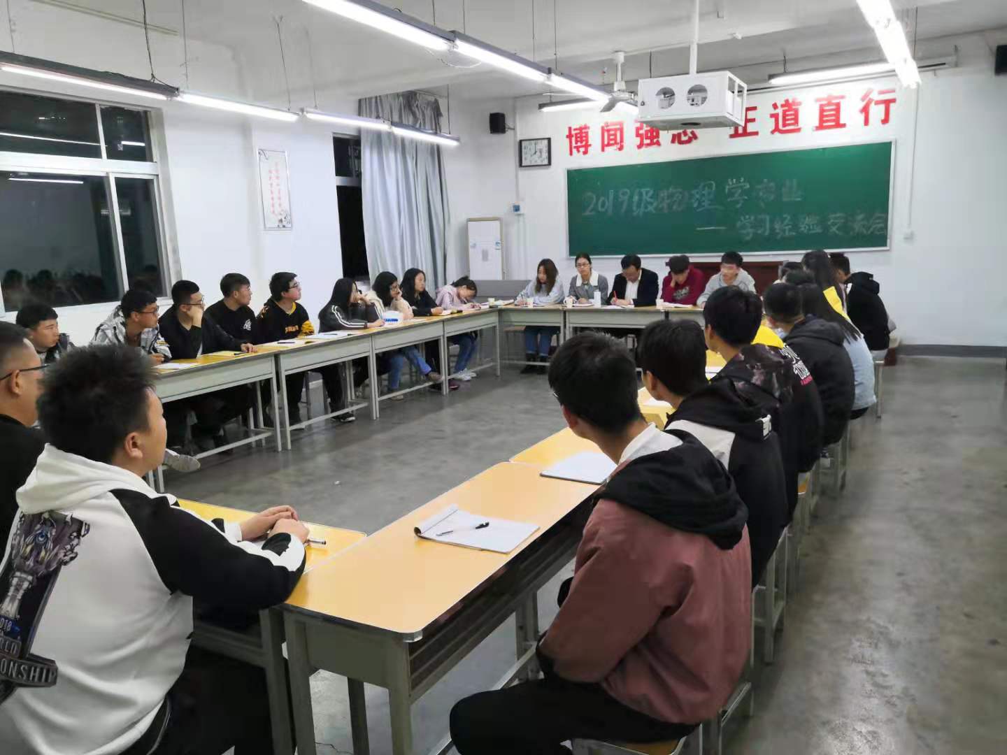 为提高教学质量、促进我系新生快速融入老员工活,掌握大学学习方法,按照党总支统一安排,11月5日晚,物理系在二号教学楼210教室召开了新生学习经验交流座谈会。太阳成集团tyc122cc经理袁训锋出席本次会议。青年教师王换民,17级郭嘉妮、18级庞仟禧、谢庆华和周萃逍4位高年级员工代表及物理1901班全体员工参加了座谈会。会议由班主任李丽君老师主持。
