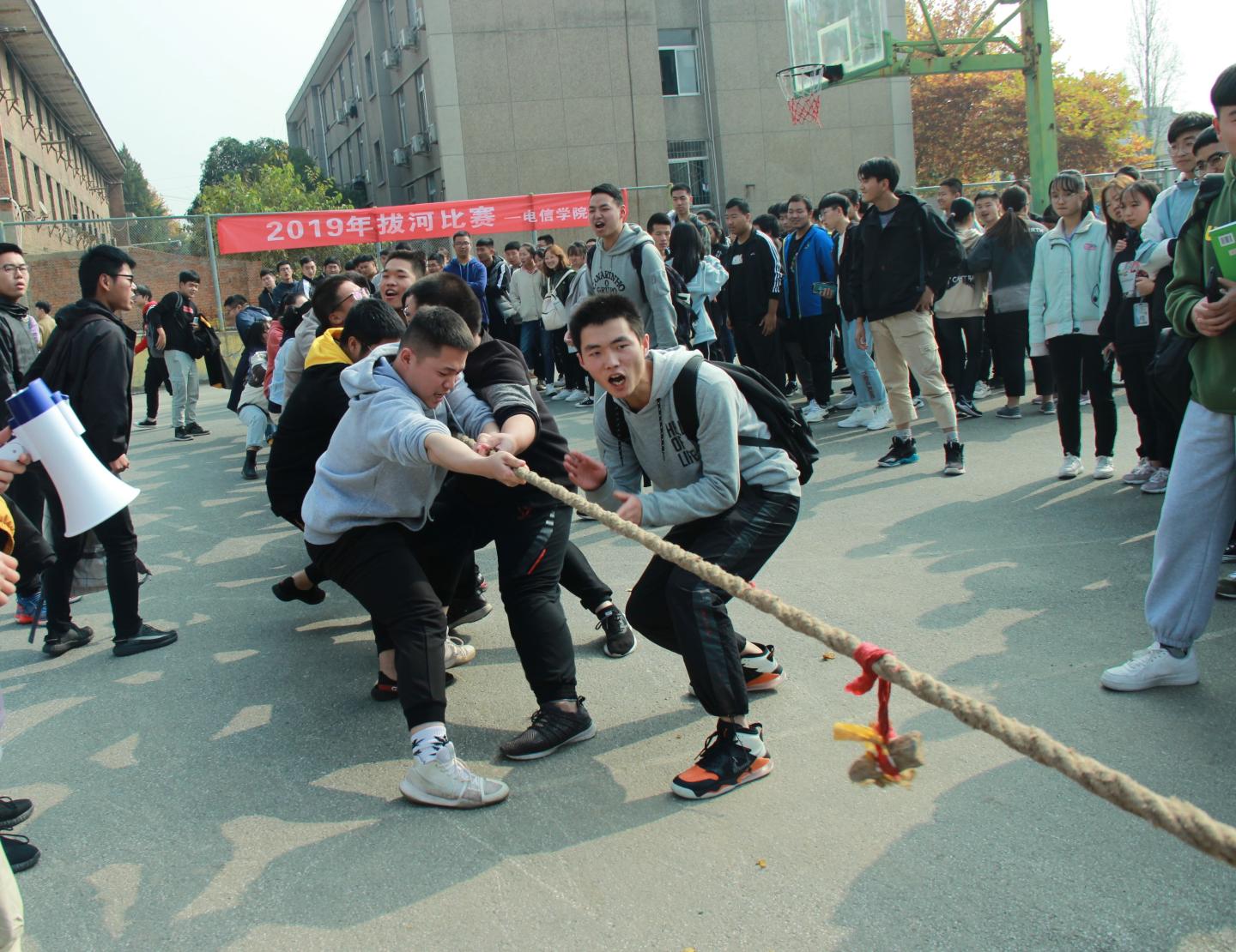 比赛场上,参赛的同学们紧握麻绳,斗志昂扬。随着裁判哨声响起,伴着拉拉队员们“一二,一二”的加油声,参赛同学们齐心协力,铆足了劲往后拉。场下,各班组成的啦啦队的呐喊声、加油声、哨子声此起彼伏,将本次比赛推向了另一个高潮。最终电气1903、1904代表队获得冠军,电信1811、1812代表队获得亚军,电信1801、1802代表队获得第三名。