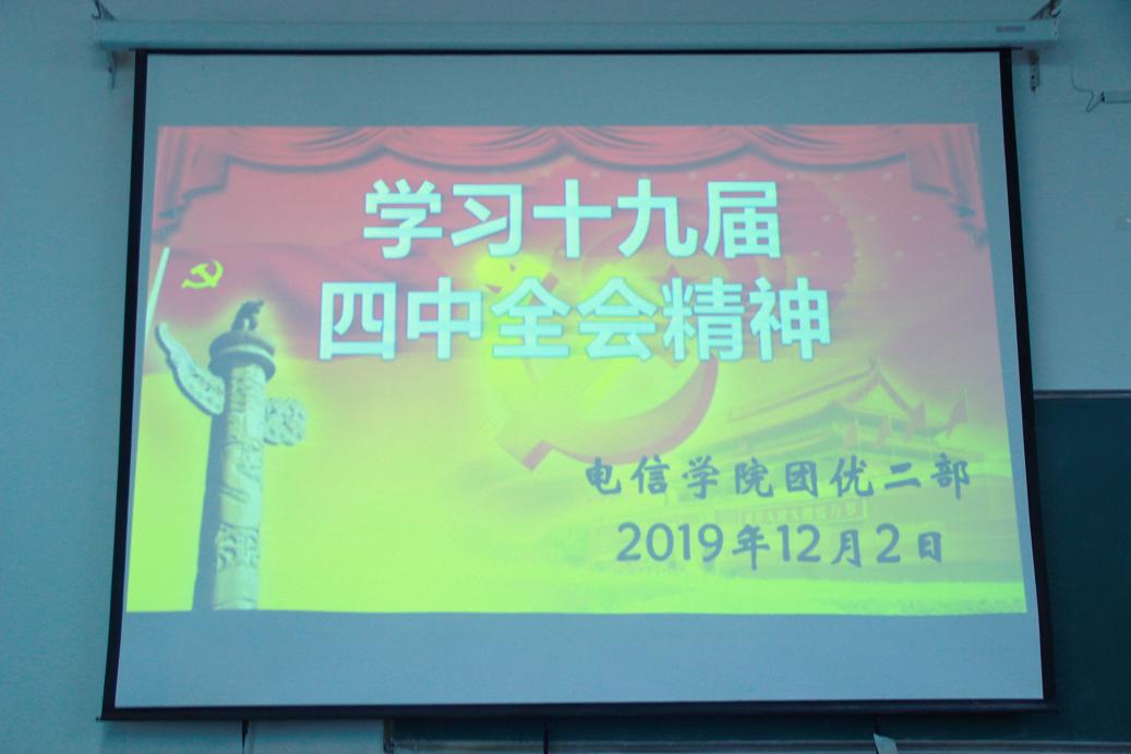 为了深入贯彻落实公司党委和公司党总支关于学习十九届四中全会精神的安排,12月2日晚,太阳成集团tyc122cc团优部组织全院近200名积极分子及本期发展对象分别于多媒体16、多媒体17教室学习十九届四中全会精神。团优部部长王泽雨出席了会议。会议分别由团优部副部长张海红、刘嫣然主持。