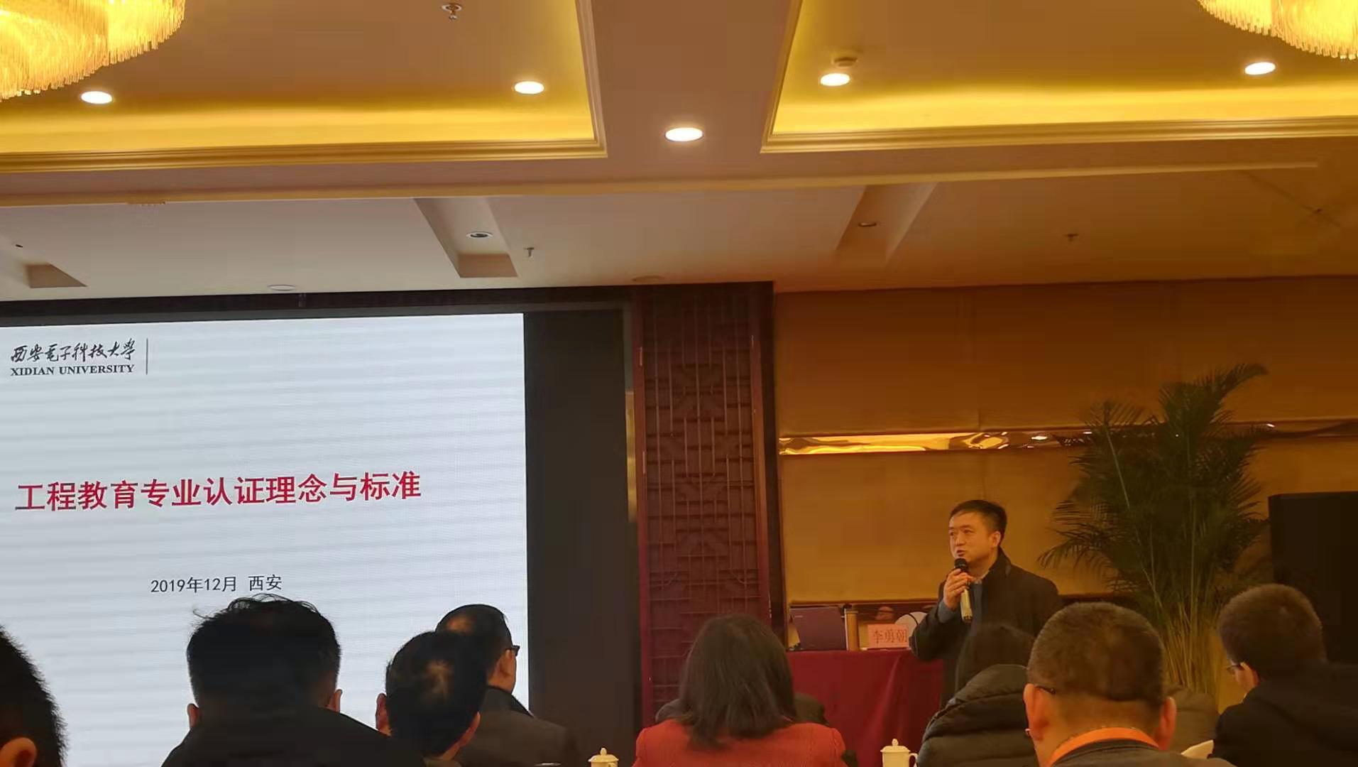 研讨会上,工程教育专家西安电子科技大学大学李勇朝教授作了以《准确理解专业认证核心理念》、《扬长避短、精准发力、对标再塑——如何为认证申请做好准备》为主题的精彩报告。提出更新教育观念、系统地规划和实施人才培养,要求每位老师把自己教学活动置身于整个体系中,高质量、高水平地完成自己肩负的任务,培养高质量、高水平的人才。
