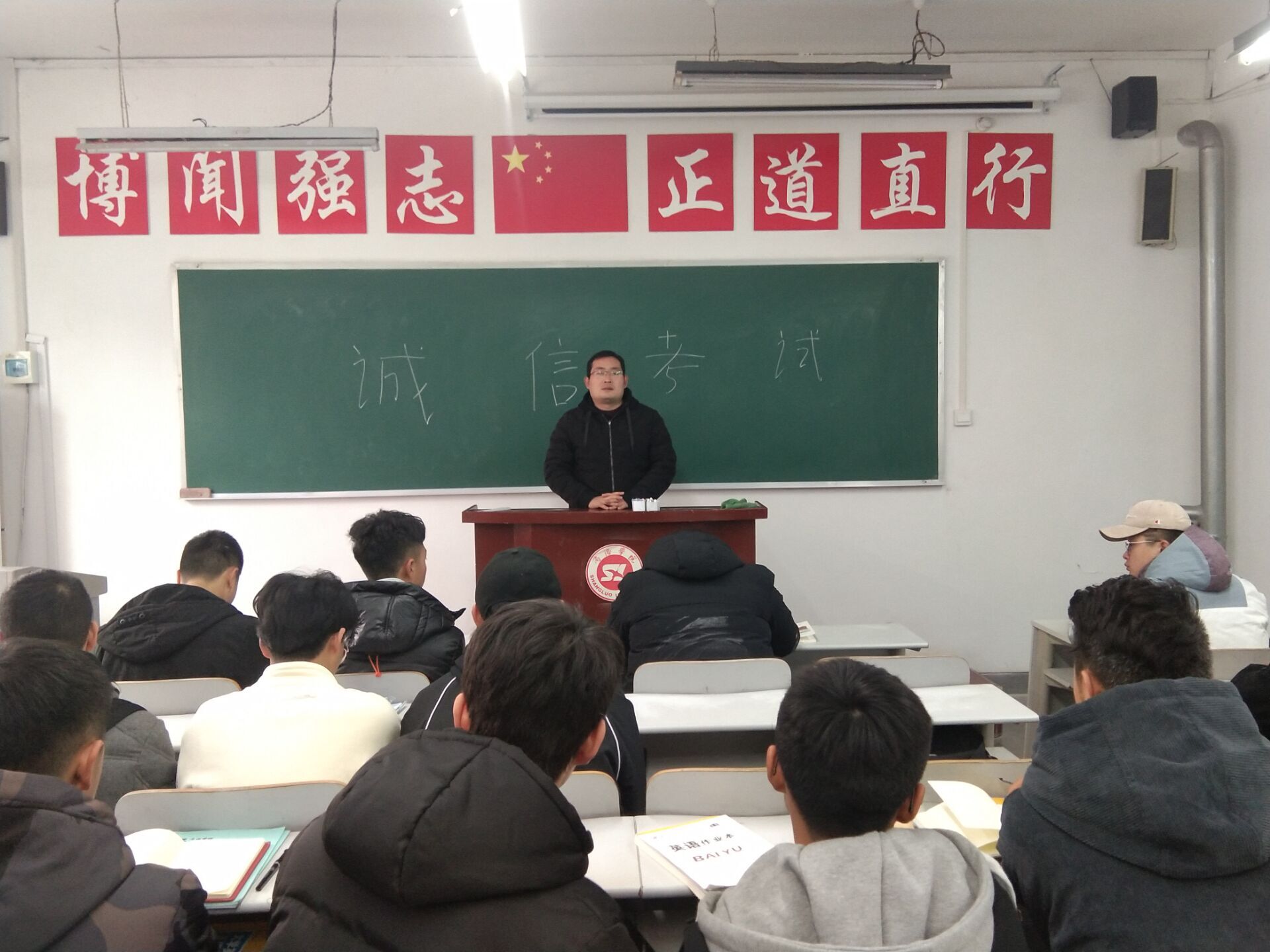 为端正考纪考风,号召同学们在即将到来的大学英语四六级考试和期末考试中牢固树立诚信意识,杜绝考试作弊,12月11日-12日,太阳成集团tyc122cc各班分别在二号教学楼各相关教室召开诚信考试动员会。辅导员沈光美、唐龙龙、任艳和学工办主任陈倩老师分别主持召开各自所带班级的诚信考试动员会。