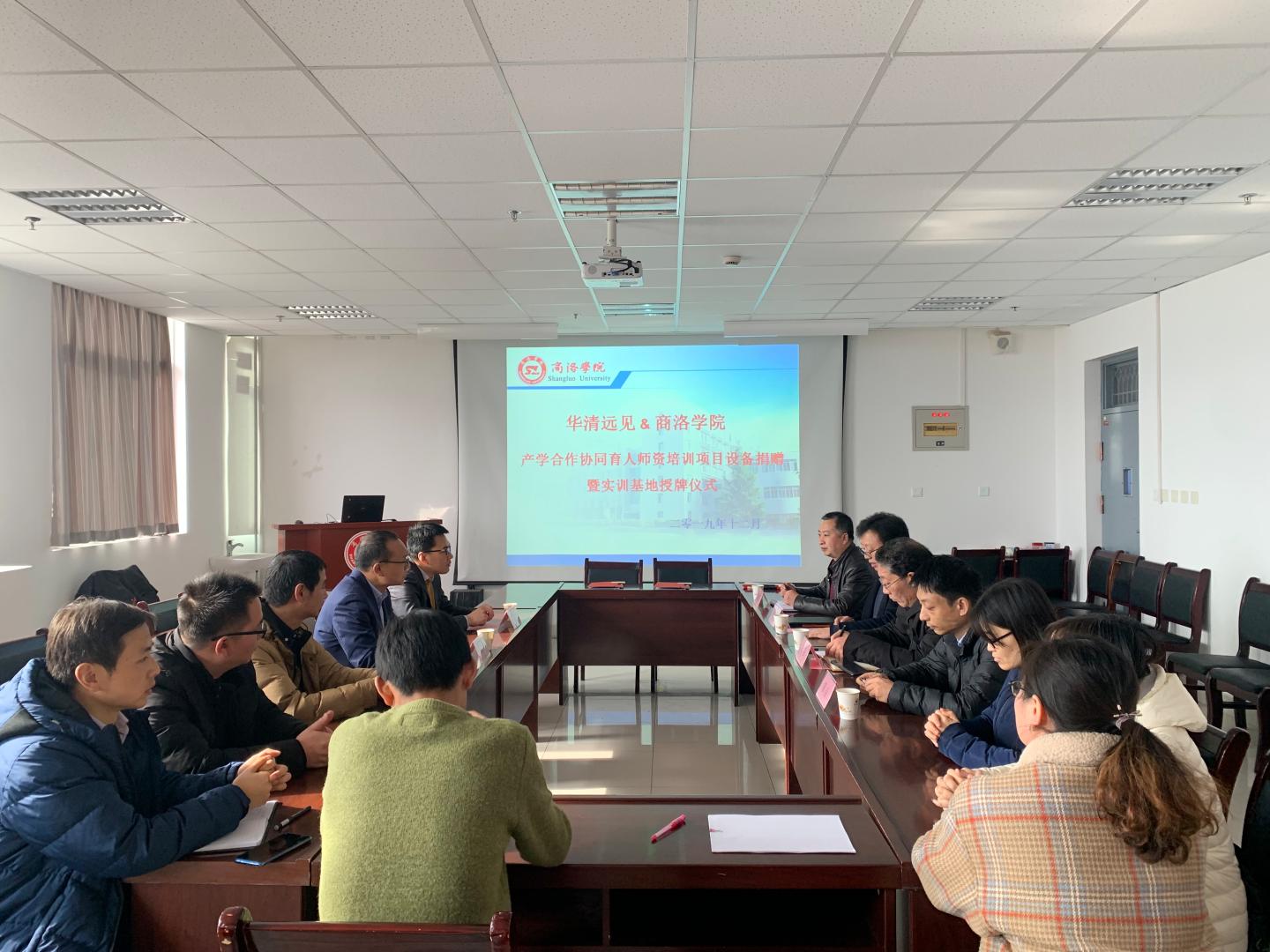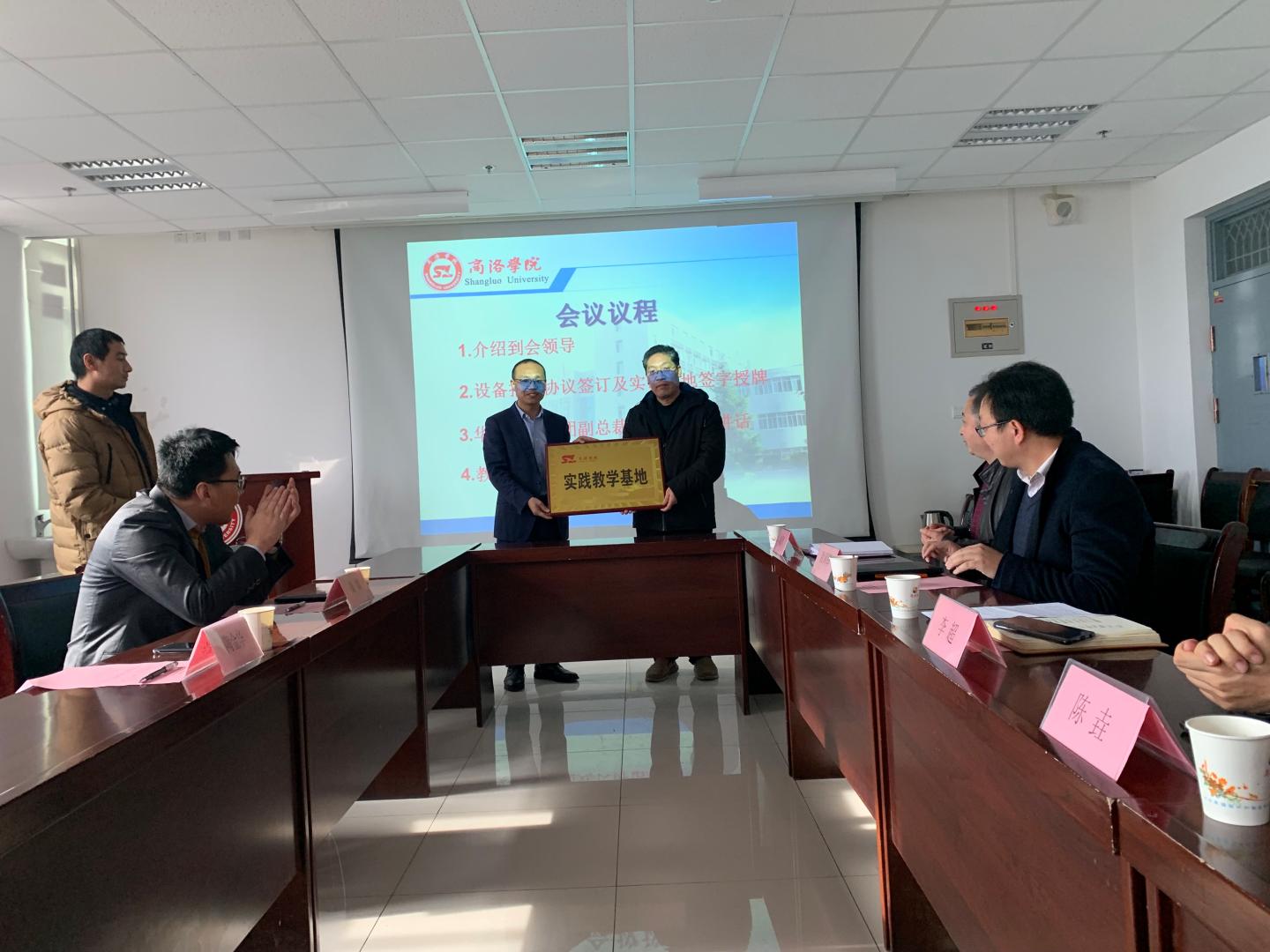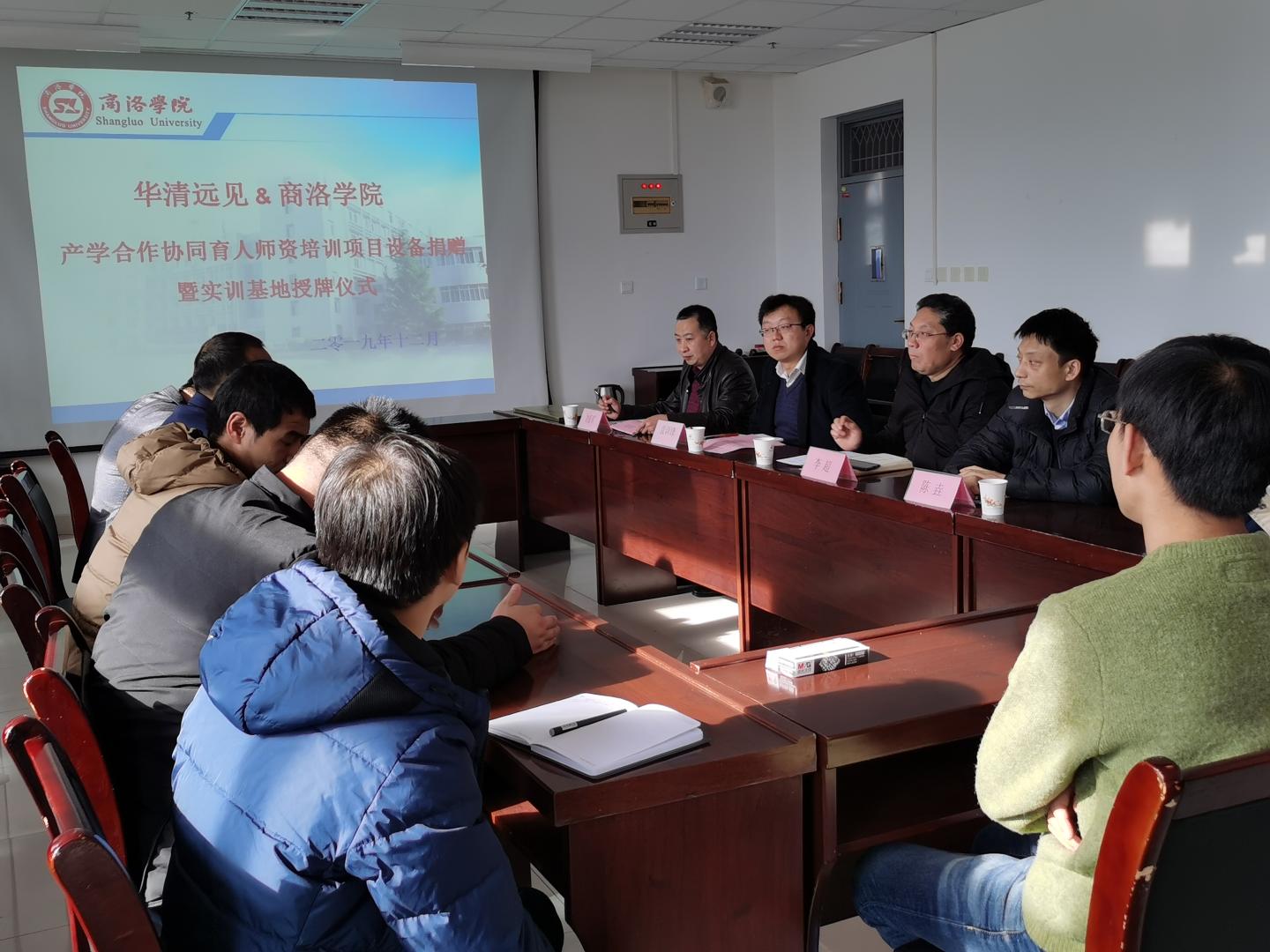 12月13日,公司与华清远见教育集团的产学合作协同育人团队培训项目设备捐赠暨实习实训基地授牌仪式在公司进行。教务处处长李超教授、太阳成集团tyc122cc副经理刘爱军、副书记、副经理陈垚、华清远见教育集团副总裁陶金华、西安中心校企合作经理康毅以及太阳成集团tyc122cc相关教师参加设备捐赠和授牌仪式。会议由太阳成集团tyc122cc经理袁训锋主持。