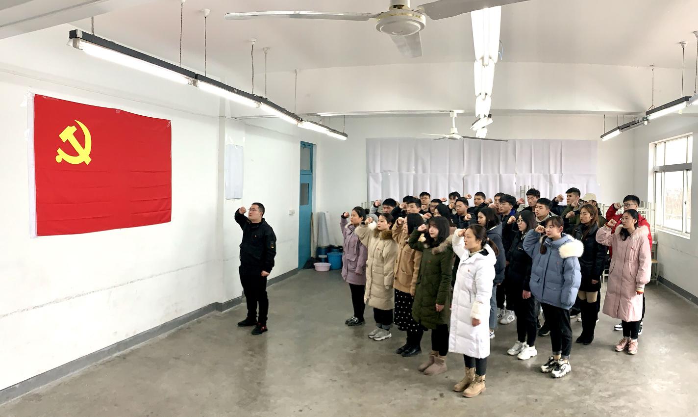 1月2日下午,公司员工第二党支部在2#215为新发展的26名中共预备党员举行了庄严的入党宣誓仪式。领誓人为支部书记唐龙龙。