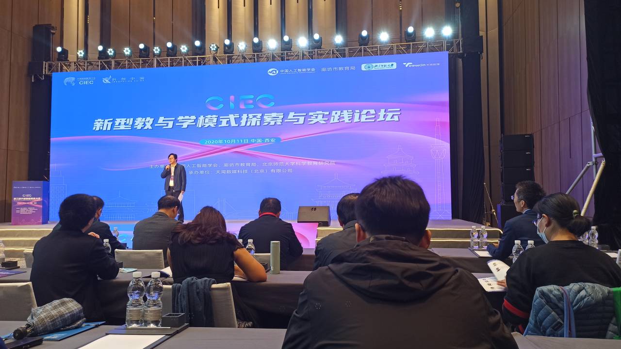在开幕式上,陕西省教育厅厅长刘建林、教育部科技司司长雷朝滋进行致辞。主题报告环节,听取题目为《5G+人工智能:教育面临的新机遇》、《面对人工智能挑战,人才培养的下一步该如何走》、《人和机器的跨模拟态学习》专家报告。分会场环节,袁训锋等参加了新时代AI职业教育发展论坛交流发言,刘爱军等参加了新型教与学模式探索与实践论坛交流。