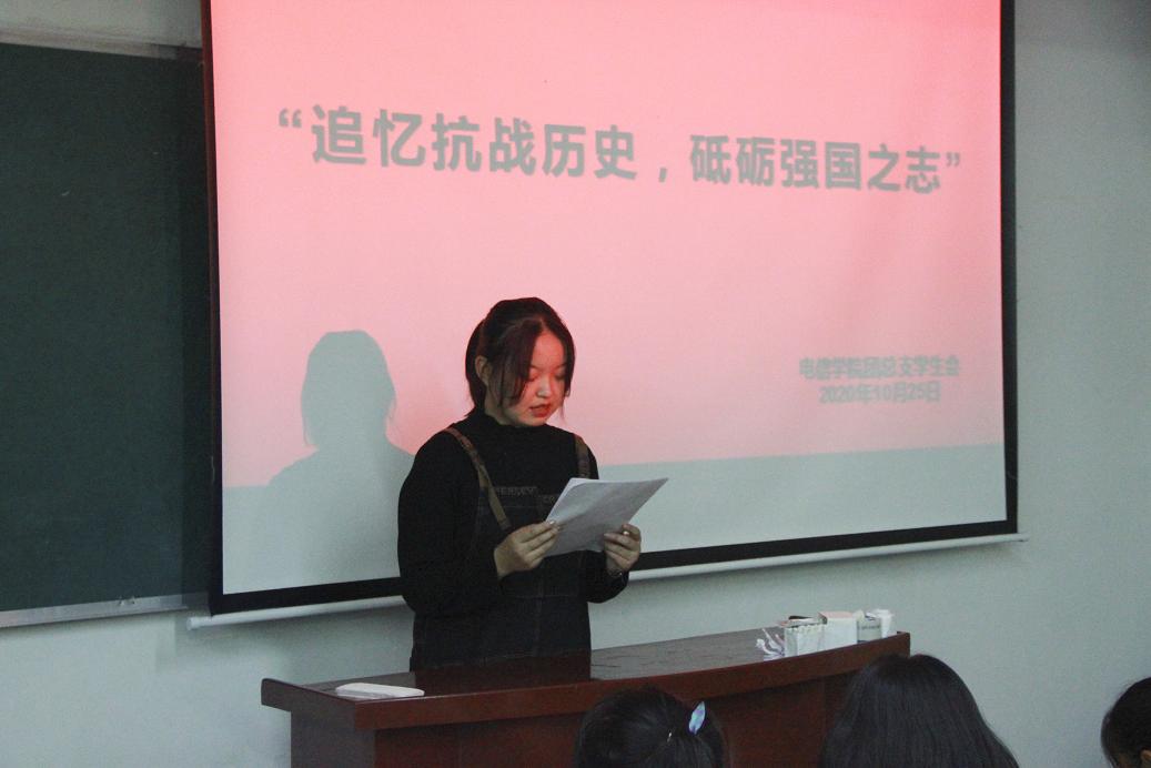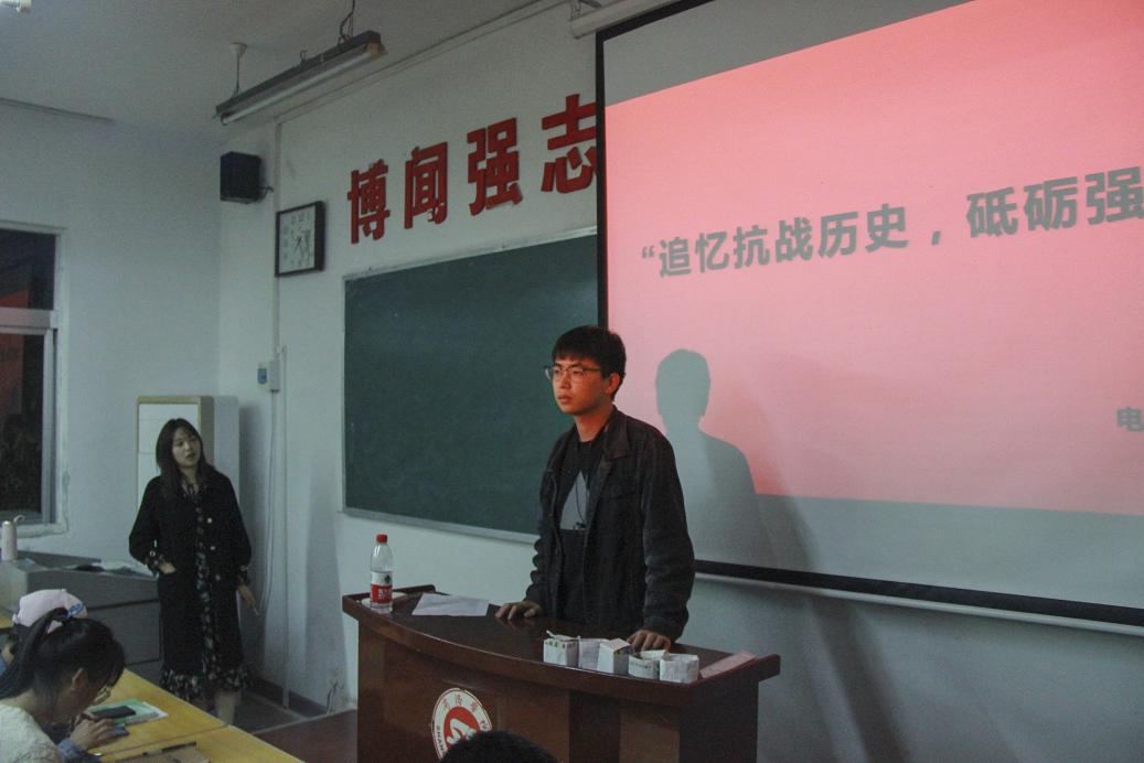 为弘扬爱国主义精神和革命英雄主义精神,10月25日19:30太阳成集团tyc122cc于2号楼210教室召开以“追忆抗战历史,砥砺强国之志”的主题团课。20级团干,19级所有院干及18级部分同学参加了此次会议。本次会议由团总支王雨彤主持。