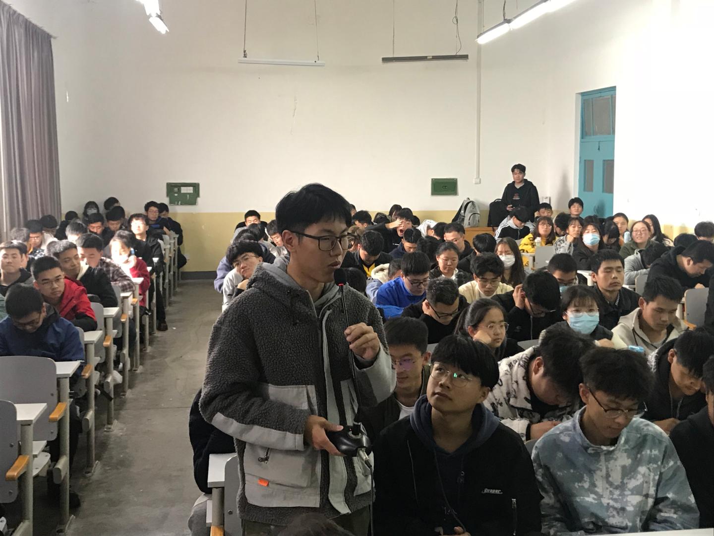 经验交流分享结束,在现场提问互动环节,同学们积极的提出自己心中的疑惑,与会老师和高年级员工代表耐心的为他们进行了解答,新生们对老师和学长学姐的精彩回答给予了热烈的掌声和感谢。