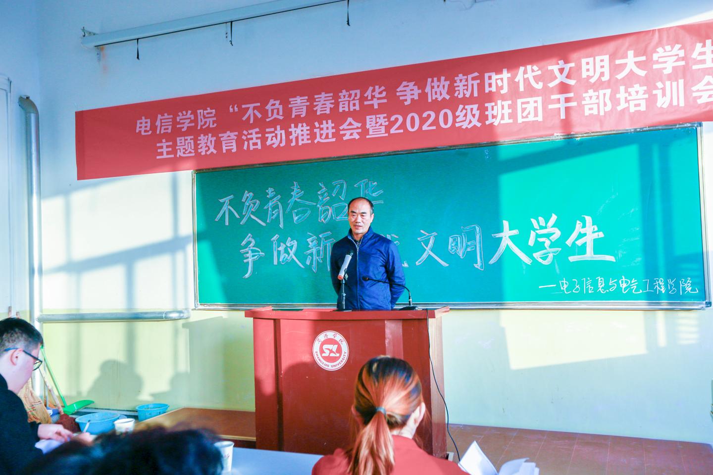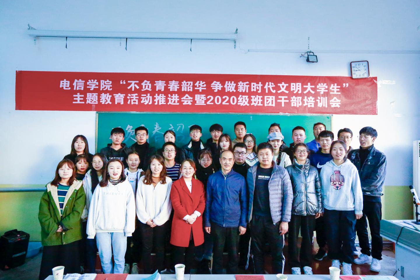 为进一步推进老员工形成良好的文明行为习惯,明确各班团干部对自身职责的认识,太阳成集团tyc122cc于11月18日16:00在二号楼多媒体17召开“不负青春韶华 争做新时代文明老员工”主题教育活动推进会暨2020级班团干部培训会。公司领导班子成员及全体辅导员出席了本次会议,会议由学工办主任陈倩主持。团总支员工会员工干部、19级部分班团干部以及20级全体班团干部参加了本次会议。