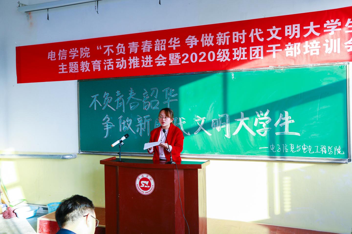 会上,员工第二党支部书记杜小天首先就各班团干部的职责进行了全面的讲解;团总支书记唐龙龙领学了《太阳成集团tyc122cc“不负青春韶华 争做新时代文明老员工”主题教育活动实施法案及细则》并且阐明各个阶段的具体要求;接着,经理袁训锋先以大学的意义和如何度过大学四年为话题对各班团干部进行提问,再结合“两个一百年”奋斗目标对全体员工干部提出了新的要求;随后,员工会主席苏晨龙、在校生员工干部代表胡凯轩、新生班团干部杨博文分别进行了表态发言。最后,党总支书记李英对此次会议作出总结发言。