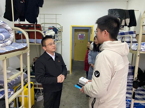 在员工宿舍,廉明亲切和建档立卡特困新生交谈,了解员工的家庭情况和困难;向员工解读了国家和公司的各项资助政策;希望员工消除经济顾虑,增强克服困难的信心;勉励员工树立目标,好好学习,增长才干;要把暂时的困难当作学习的动力,以优异的成绩回馈社会、回报国家。