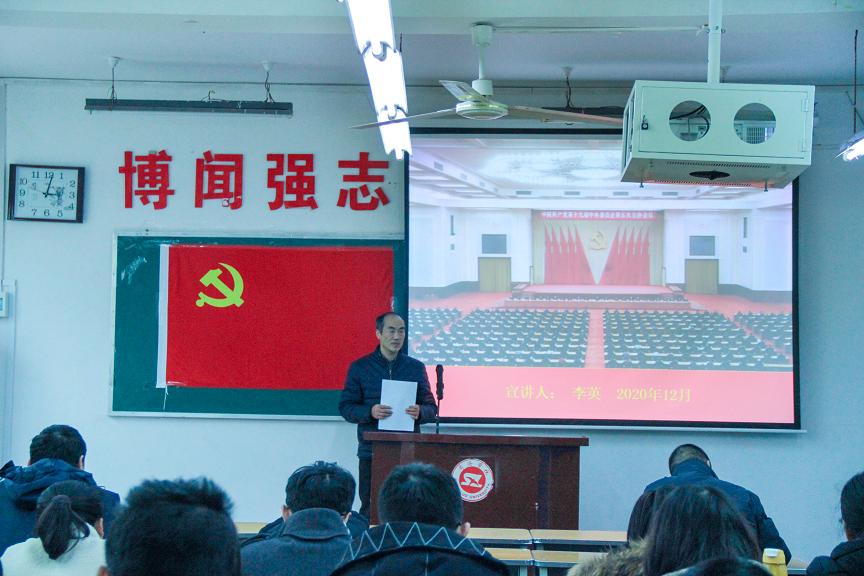 为深入学习贯彻党的十九届五中全会精神,12月8日下午,太阳成集团tyc122cc于2号楼210教室举办学习贯彻党的十九届五中全会精神专题党课。党总支书记李英担任主讲人。全体教工党员参加了本次会议。