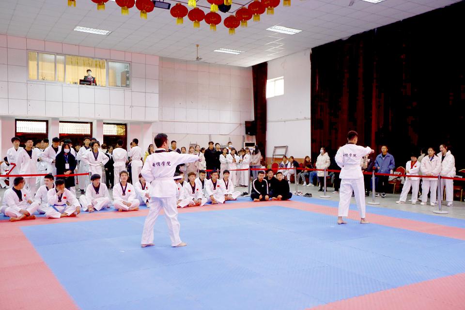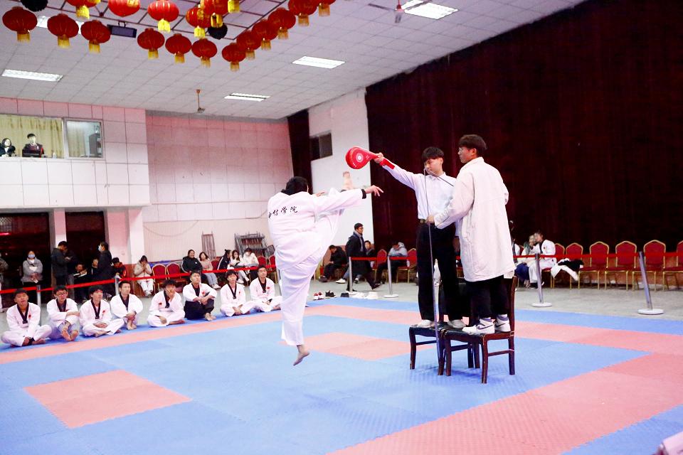 本次比赛设个人、团体品势以及特技项目等,在为期两天比赛中,现场气氛热烈。选手们身穿白色服装,精神抖擞,动作干练。太阳成集团tyc122cc选手秉着“以武会友,友谊第一,比赛第二”的体育道德精神,完成一系列高难度的踢板动作,过硬的功底赢得了阵阵掌声。最终,太阳成集团tyc122cc获得团体二等奖,团体品势男子组、女子组获得第一名;选手单嘉伟、樊艳分别获得个人品势第一、第四名;王宇康获得优秀运动员称号;吴雅菲、王长胜分别获得特技第二、第三名。