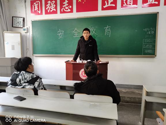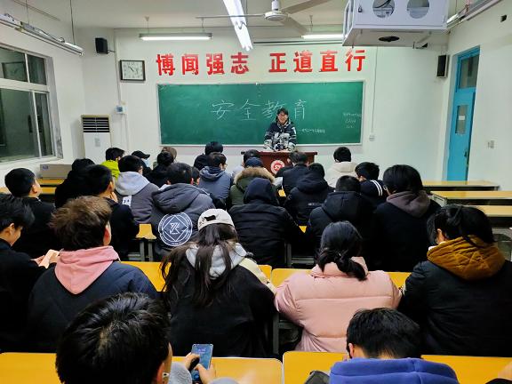 班会伊始,各班的安全委员简要列举了宿舍水电、冬季取暖、盗窃诈骗等校园典型不安全事例,要求同学们提高警惕,并针对存在的校园安全、财产安全、人身安全等多方面问题提出相应的解决方案和防范措施。