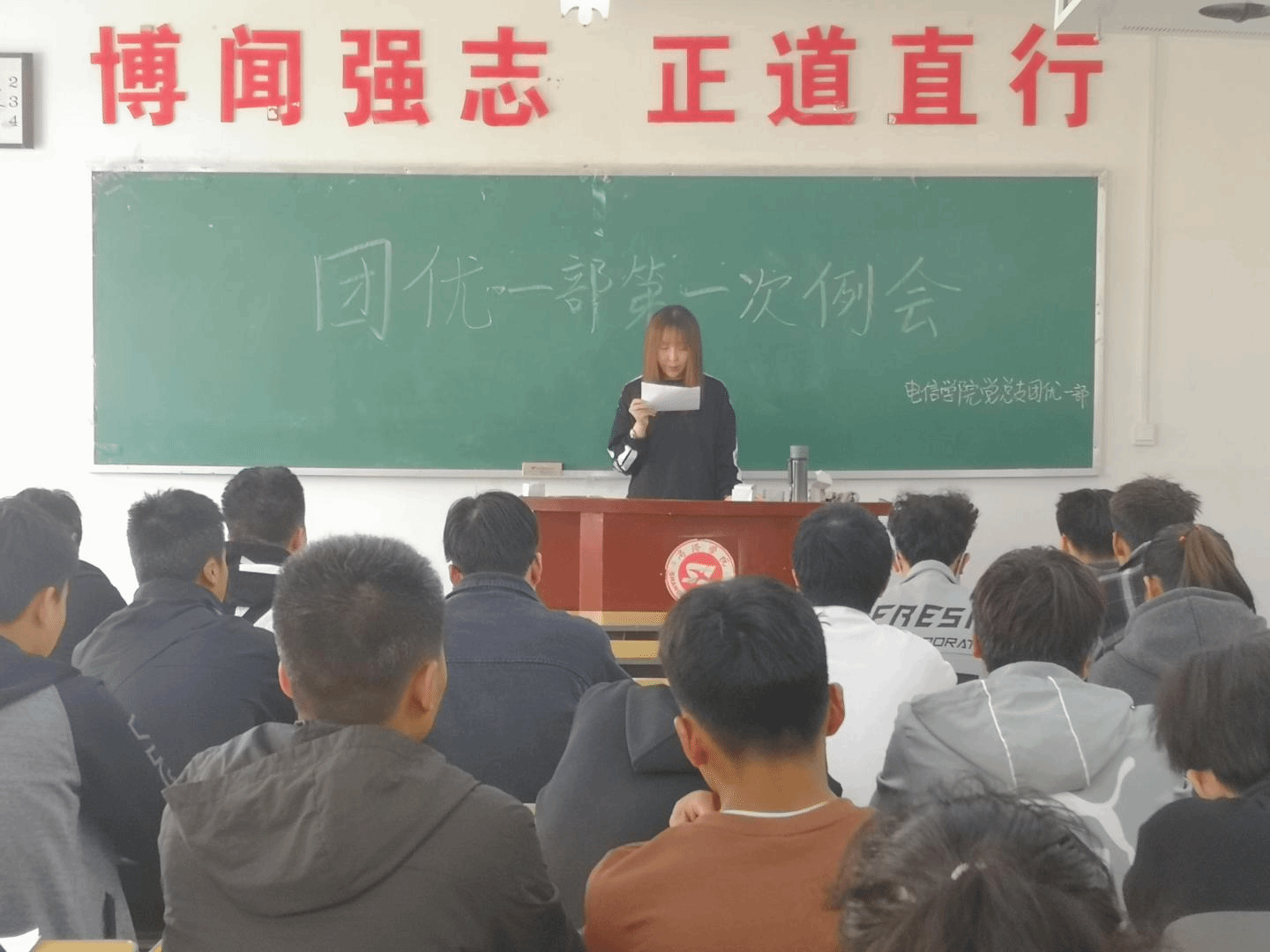 为加强公司员工第一党支部积极分子教育培养工作,3月24日,公司党总支团优一部在2号楼210教室召开第一次例会。团优一部部长赵乙泽,副部长马艺萌、樊艳,督察部副部长洪鸣岐出席了会议。团优一部参加第十一期培训的52名积极分子参加了本次会议。会议由团优一部成员訾依凡主持。