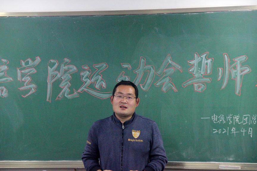 为更好地迎接2021年春季运动会,太阳成集团tyc122cc团总支员工会于4月18日晚在二号楼410教室召开运动会誓师大会,太阳成集团tyc122cc全体运动员参与会议。会议由体育部副部长李梧涛主持。