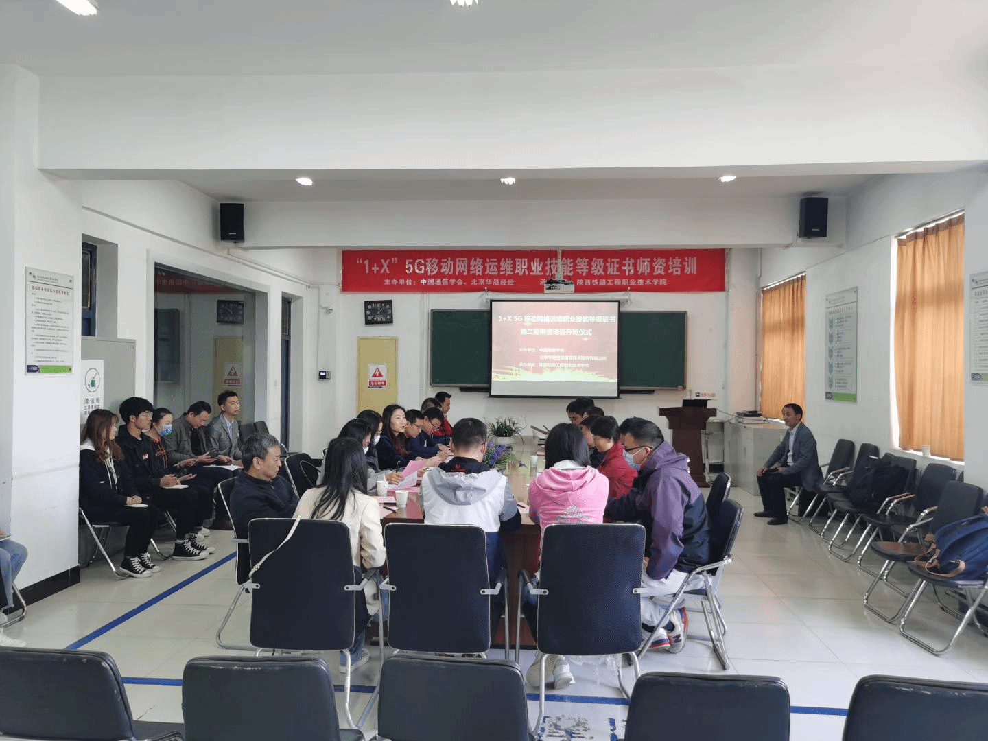 4月19日上午,由中国通信学会、北京华晟经世信息技术有限公司主办,铁道运输公司承办的全国“1+X”5G移动网络运维职业技能等级证书2021年第二期线下团队培训在临渭校区S206开班,为进一步加强公司实施1+x证书经验和学科前沿研究工作,提高员工获得证书率,太阳成集团tyc122cc教师代表邢笑笑前往陕西铁路工程职业技术公司培训。