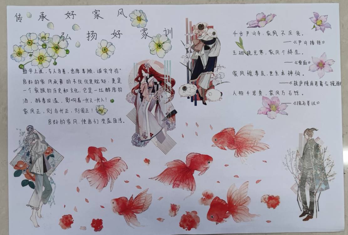 会议伊始,商哲带领同学们学习了《习近平关于注重家庭家教家风建设论述摘编》,并向大家展示了同学们关于“家风建设”所做的剪纸、书法,漫画、以及征文等作品,她指出我们应该着眼于以优良党风带动民风社风、发挥优秀党员、干部道德模范的作用,把家风建设作为党员作风建设重要内容,弘扬真善美,抑制假恶丑,崇德向善、见贤思齐的社会风气。通过学习,让我们更好的了解了家教家风的重要性,学习宣传先进典型,把对党忠诚纳入家庭家教家风建设,更好的投身于党的建设中。