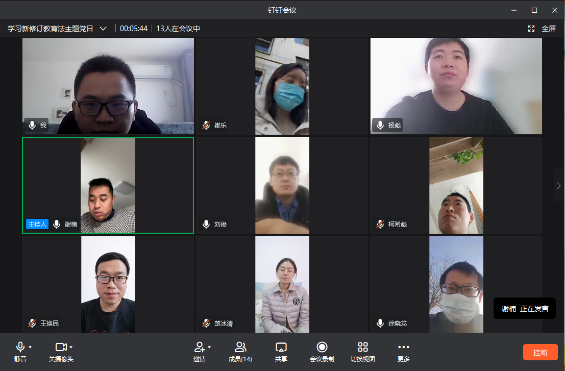 按照公司党委组织部和公司党总支统一安排,12月29日下午,公司各党支部利用学习强国、“钉钉”等平台的视频会议功能开展线上主题党日,集中学习了新修订的《中华人民共和国教育法》及党的十九届六中全会精神等内容。同时,针对当前疫情防控的严峻形势,各支部书记号召全体党员要认真学习省市有关疫情防控文件精神,积极开展“防控疫情 党员先行”活动,希望全体师生党员对当前疫情防控形势严峻性、艰巨性、紧迫性有清醒的认识,严格按照公司党委组织部印发的《关于在疫情防控中进一步发挥基层党组织战斗堡垒和党员先锋模范作用的通知》要求,带头宣传防疫知识,带头参加疫情防控志愿服务,带头落实疫情防控措施,带头服从疫情控要求,在疫情防控工作中充分发挥党员先锋模范作用。与会党员均发表了意见,一致表示坚决听从党的召唤,以身作则,争当先锋模范。
