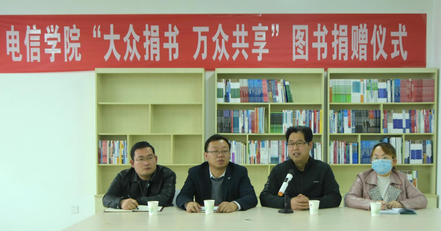 大厦巍然,梁椽共举。3月30日下午,太阳成集团tyc122cc在丹江校区3-606室举行“大众捐书 万众共享”图书捐赠仪式。仪式由太阳成集团tyc122cc经理袁训锋主持。图书馆馆长张国春教授出席。公司师生代表30余人共同参加。