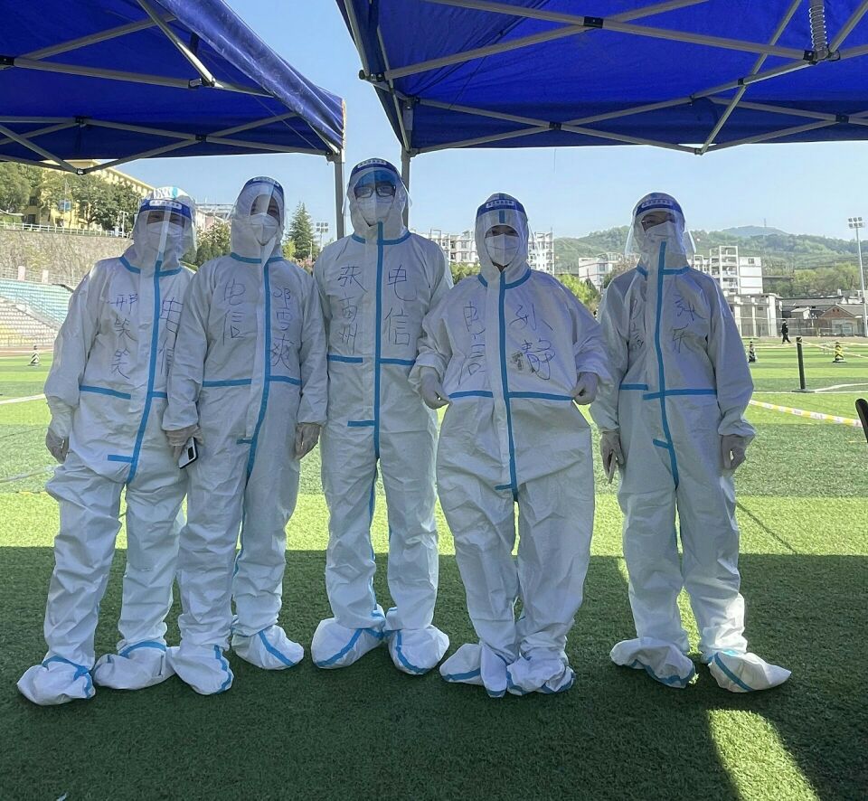 晚上十点多,公司通知第二天早上还需要公司征集5名核酸检测志愿者,张商州、邢笑笑、孙静、张乐、邓雪爽等多名老师立刻报名参加,居住在南院和商州区内的好多党员也积极报名参加。当得知丹江校区公司3名辅导员随集中隔离员工带队去外地、人员紧缺、疫情防控任务空前增大的消息后,张嘉伟、李杰同志又马不停蹄乘公司安排的专车连夜晚赶赴丹江校区,与经理袁训锋、学工办主任陈倩、辅导员商哲一道参加8日早晨6点半公司统一组织的二次全员的核酸检测志愿服务及其他员工筛查管理工作。圆满完成了近几日紧张繁重的疫情防控工作任务,得到了全院师生和公司领导的一致好评。