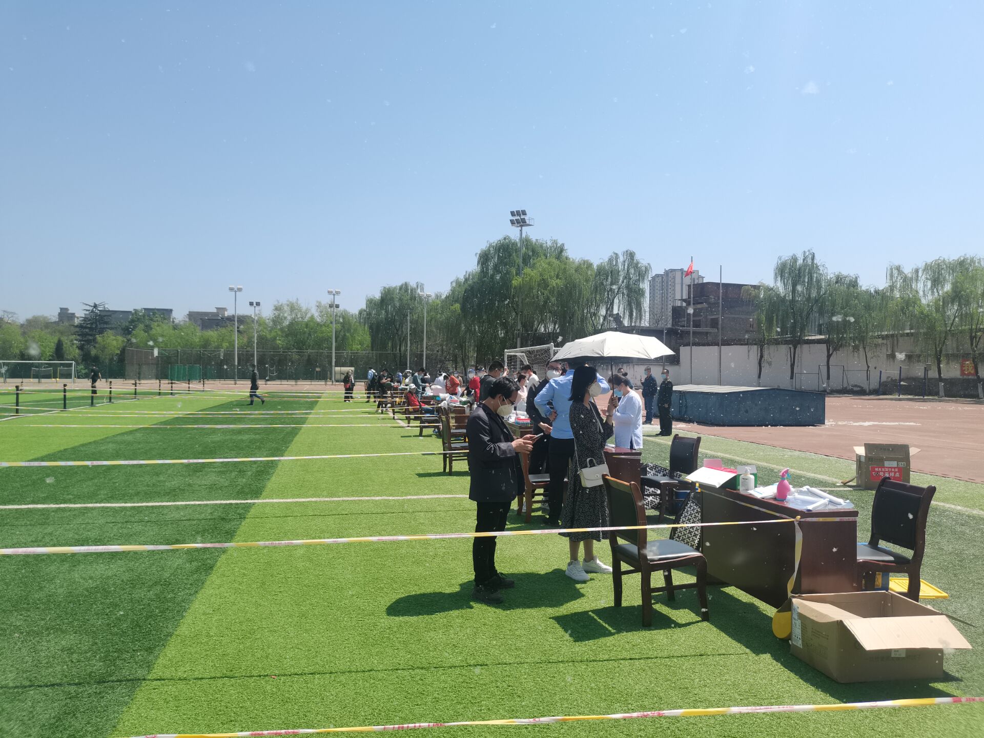 4月7日晚,当职工在群内接到第二天需要给北新街校区集中隔离观察员工送饭及为大操场核酸检测征集志愿服务者的消息后,居住在北新街校区的教师党员、入党积极分子和普通职工第一时间踊跃报名,很快就超过了需求人数。副经理李亚文、电气系主任张商州等同志带头参加,张乐、邢笑笑等8名老师于4月8日中午前给隔离在北新街校区的23名同学送来可口的饭菜和生活必需品。当得知居住在南院青年公寓的4名教师平时不大做饭没有准备太多的食物生活存在一定困难时,居住在南院的党员谢谦、侯茹、唐卫斌等同志纷纷打电话联系并送去了米面油、菜蔬及灶具等,解决了职工暂时的生活困难,职工们感到非常温暖。志愿者送完午饭,张商州、张嘉伟、张宁、杨彪、李杰等5位老师来不及吃完午饭就匆匆放下碗筷赶赴大操场,与其他志愿者一道穿上防护服,参加中午12点开始的全员核酸检测志愿者服务,扫码、测温、登记等工作,直到下午六点多完成全院近万人的检测任务。