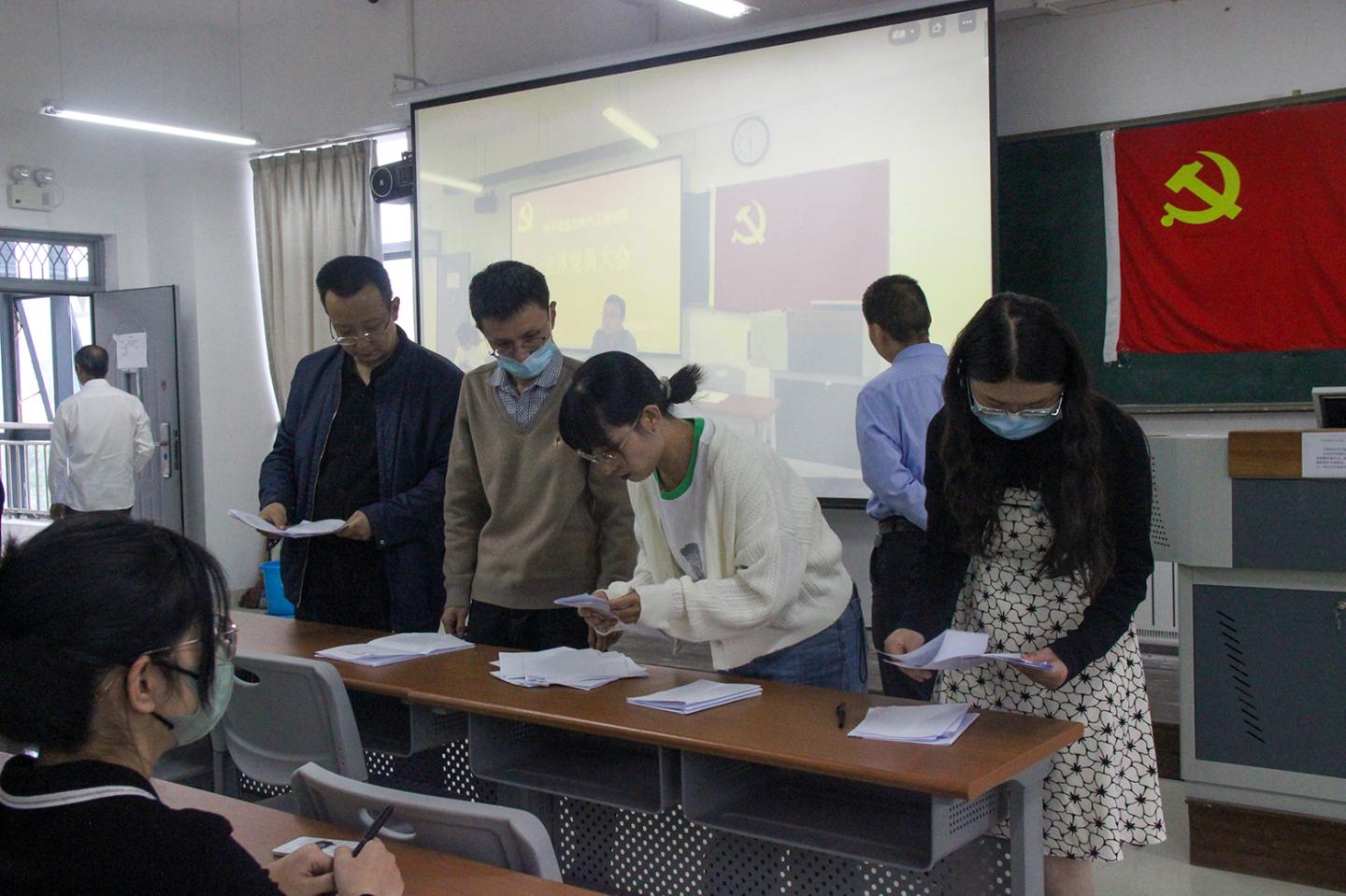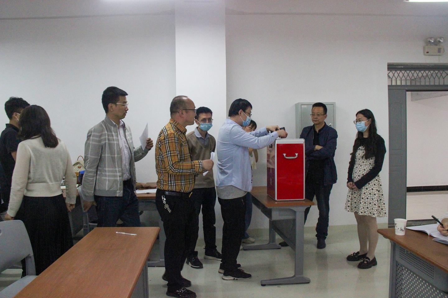 根据会议议程,李英同志介绍到会党员情况,符合党章规定,确认并宣布可以开会。党委副书记、经理袁训锋同志传达了公司党委有关候选人批复、候选人简介及选举要求等;全体与会党员举手表决全票通过了谢谦、吴茜两位同志任监票人,韩美林、赵杰两位同志任计票人。