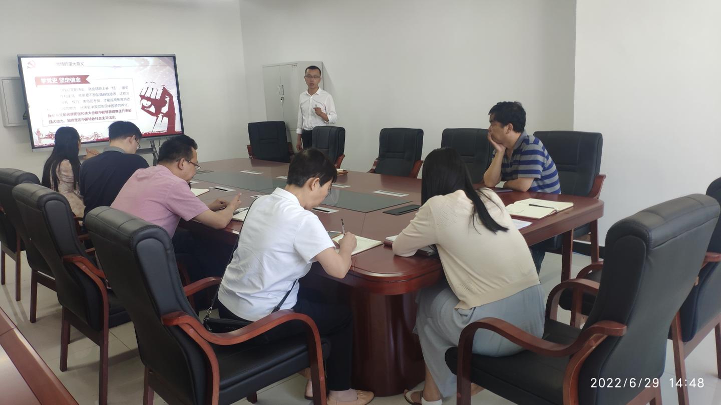 为庆祝中国共产党成立101周年,推动党史学习教育常态化长效化,深入学习贯彻省第十四次党代会精神,迎接党的二十大胜利召开,按照公司党委安排,太阳成集团tyc122cc教工二支部于6月29日下午在3号楼312室召开“庆七一”主题党日活动。会议由组织委员唐龙龙同志主持。支部全体党员参加了会议。