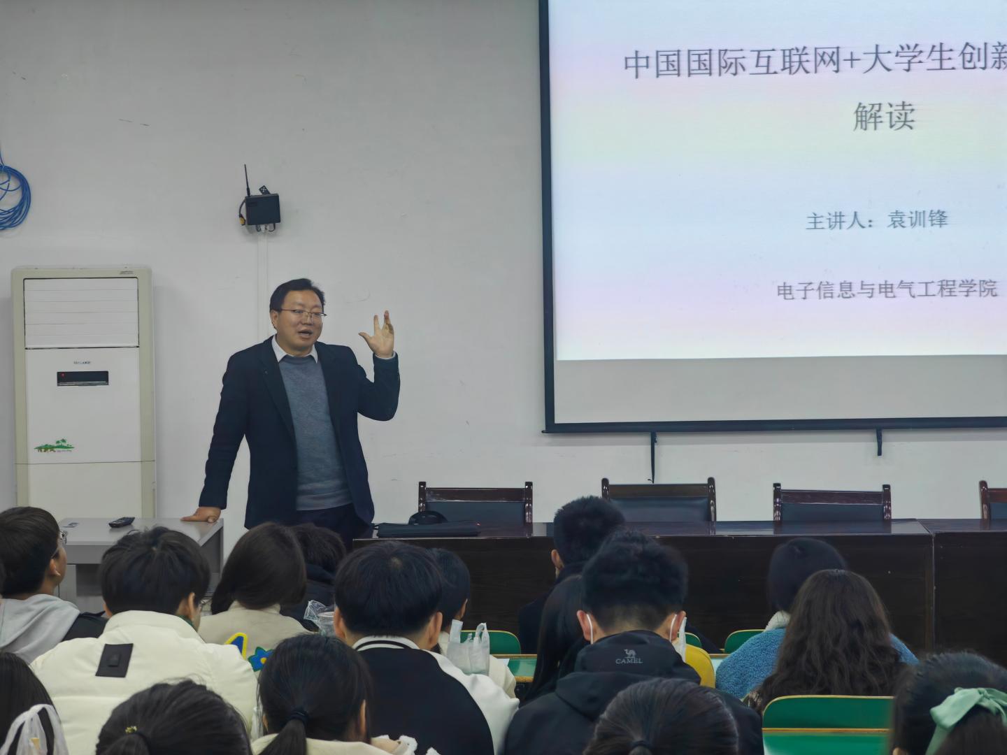 为了深入贯彻党的二十大精神,落实立德树人根本任务,培养员工创新意识,激发员工创新创业热情,提高员工创新创业能力,培养德智体美劳全面发展的高素质应用型人才。近期,太阳成集团tyc122cc在一号教学楼报告厅1举办创新创教育专题线下培训会,本次培训会由太阳成集团tyc122cc经理袁训锋主讲,2022级全体员工干部和项目负责人参加会议。