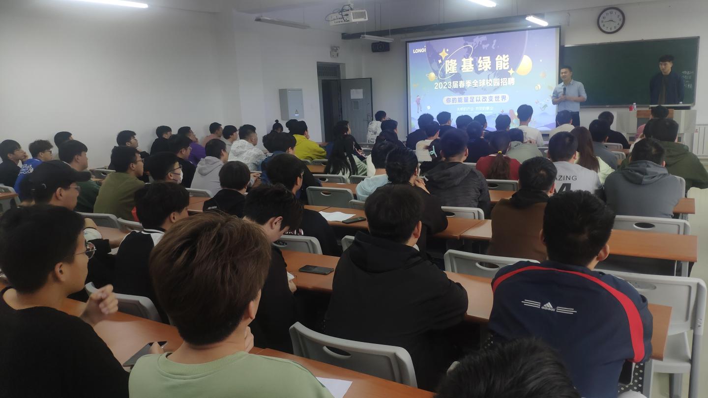 座谈会后,在丹江校区3号楼202室举办了隆基乐叶光伏科技(西咸新区)有限公司2023届毕业生校园专场招聘会,太阳成集团tyc122cc、化材公司相关专业100余名毕业生参加了此次会议。隆基乐叶光伏科技(西咸新区)有限公司招聘人员带领毕业生们一起观看了公司的宣传视频,详细介绍了公司的历史沿革、基本概况、企业文化、福利待遇等,就公司的发展现状、业务范围、战略目标、招聘意向、流程等方面的情况进行了深入细致地讲解,并对毕业生关注的问题进行现场解答,鼓励2023届毕业生加入隆基乐叶光伏科技(西咸新区)有限公司。同学们纷纷表示,隆基乐叶光伏科技(西咸新区)有限公司本次的招聘岗位数量多、薪资高、前景好,感谢公司为毕业生搭建的面对面交流平台。