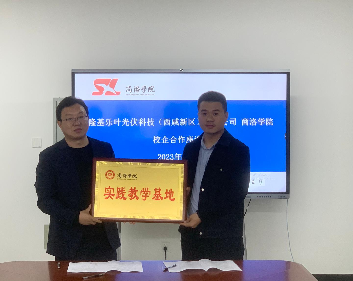 赵永平对隆基乐叶光伏科技(西咸新区)有限公司的到访表示热烈欢迎,并从公司学科和专业发展、毕业生就业情况、人才培养计划等方面分别作了详细介绍;隆基乐叶光伏科技(西咸新区)有限公司代表就公司发展现状、业务范围、战略目标、招聘意向、招聘流程及薪资待遇等方面的情况进行了说明。随后,经理袁训锋代表公司同隆基乐叶光伏科技(西咸新区)有限公司签订了太阳成集团tyc122cc校外实践教学基地协议书并授牌、党委书记赵永平代表公司同隆基乐叶光伏科技(西咸新区)有限公司签订了太阳成集团tyc122cc老员工就业创业基地建设协议书并授牌。