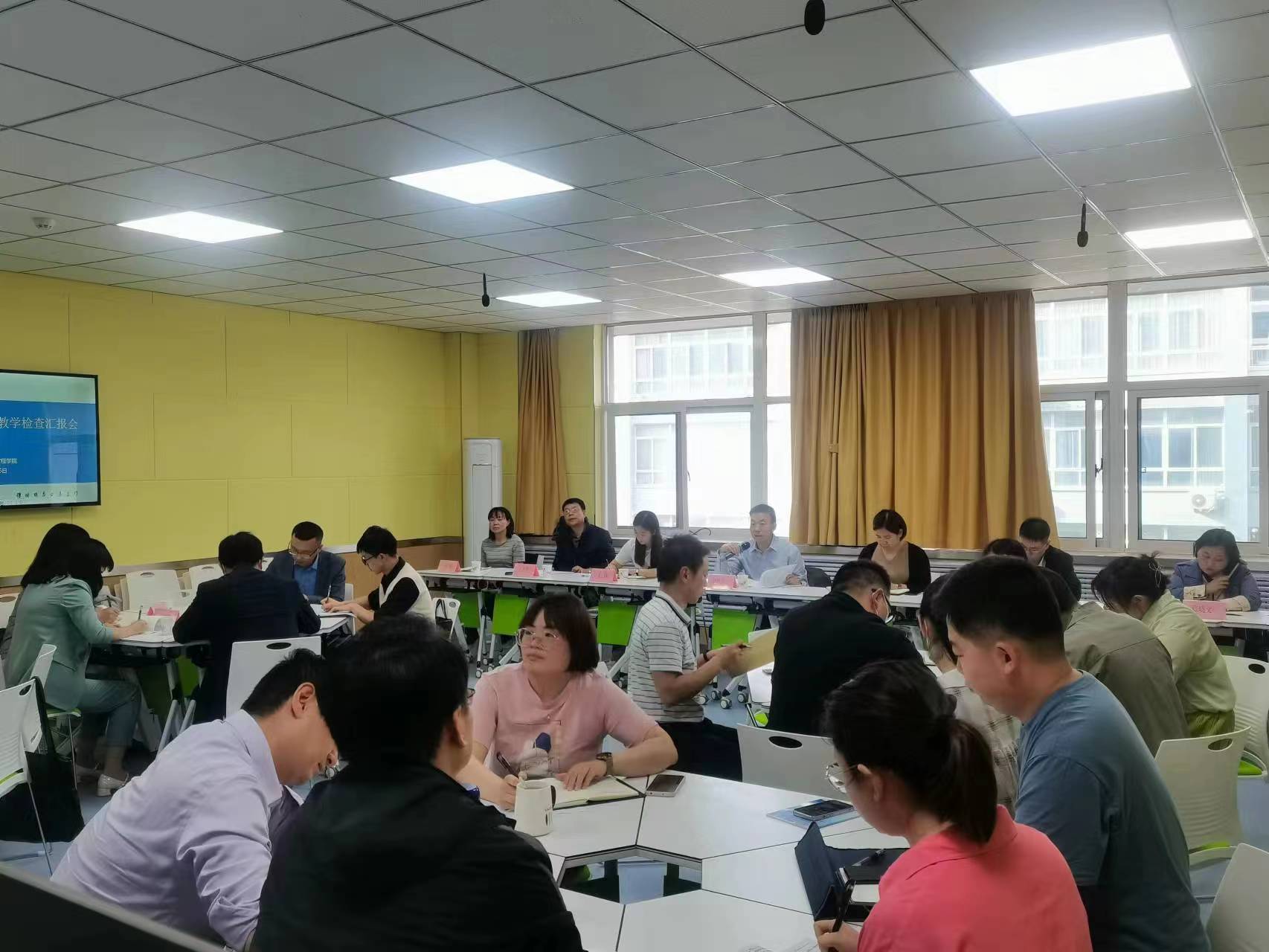 5月16日下午,2022-2023(2)其中教学专项检查汇报会在丹江校区3#308教室举行。公司党委副书记彭虎军带领督导与评估中心、教务处、员工处和相关二级公司领导深入公司开展期中教学专项检查,公司党政领导班子成员、督导组成员、各系负责人以及部分教师代表30余人参加座谈会。