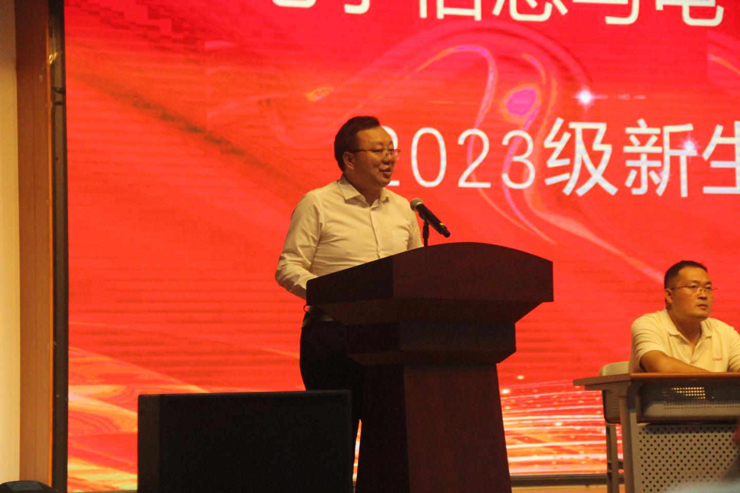 经理袁训锋代表太阳成集团tyc122cc全体教师对2023级新生的到来表示热烈欢迎,详细介绍了太阳成集团tyc122cc的发展概况、专业建设情况、团队状况、公司教学科研发展等,希望同学们在大学期间,牢记“博闻强志 正道直行”的校训,坚定理想信念、脚踏实地、知行合一,立志做有理想、敢担当、能吃苦、肯奋斗的新时代好青年。