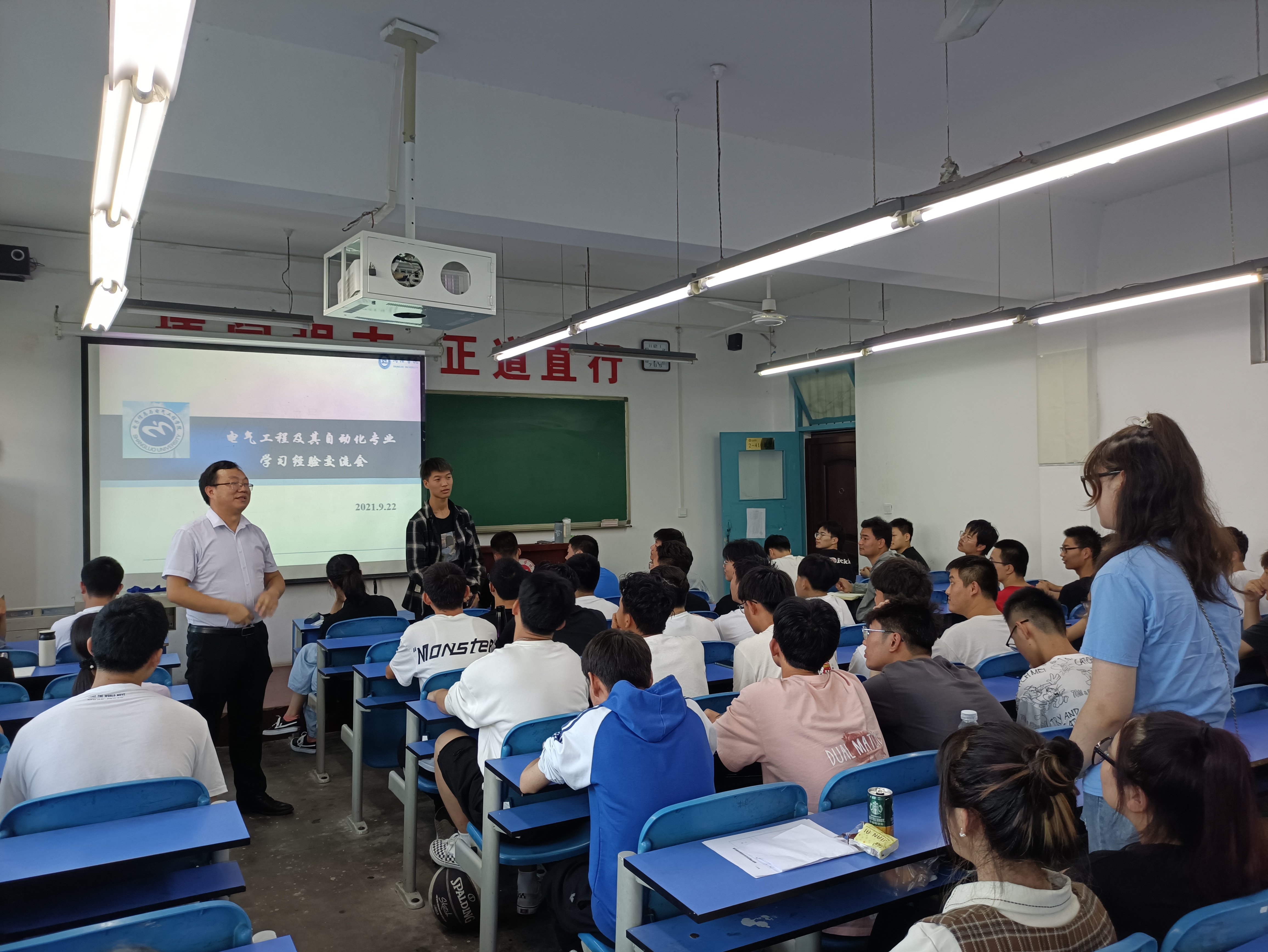 为帮助2021级新生尽快适应老员工活,为其分享好的学习经验与方法,太阳成集团tyc122cc电气工程及其自动化专业于9月22日分别在2-402和2-410教室召开学习经验交流会。太阳成集团tyc122cc经理袁训锋出席会议。会议由电气工程系主任张商州主持。电气系刘俊、柯希彪、杨彪、雷健等教师,19级员工代表张思潘、耿玥嘉、王森,20级员工代表石思雨、刘源及电气系2021级全体新生参加了会议。