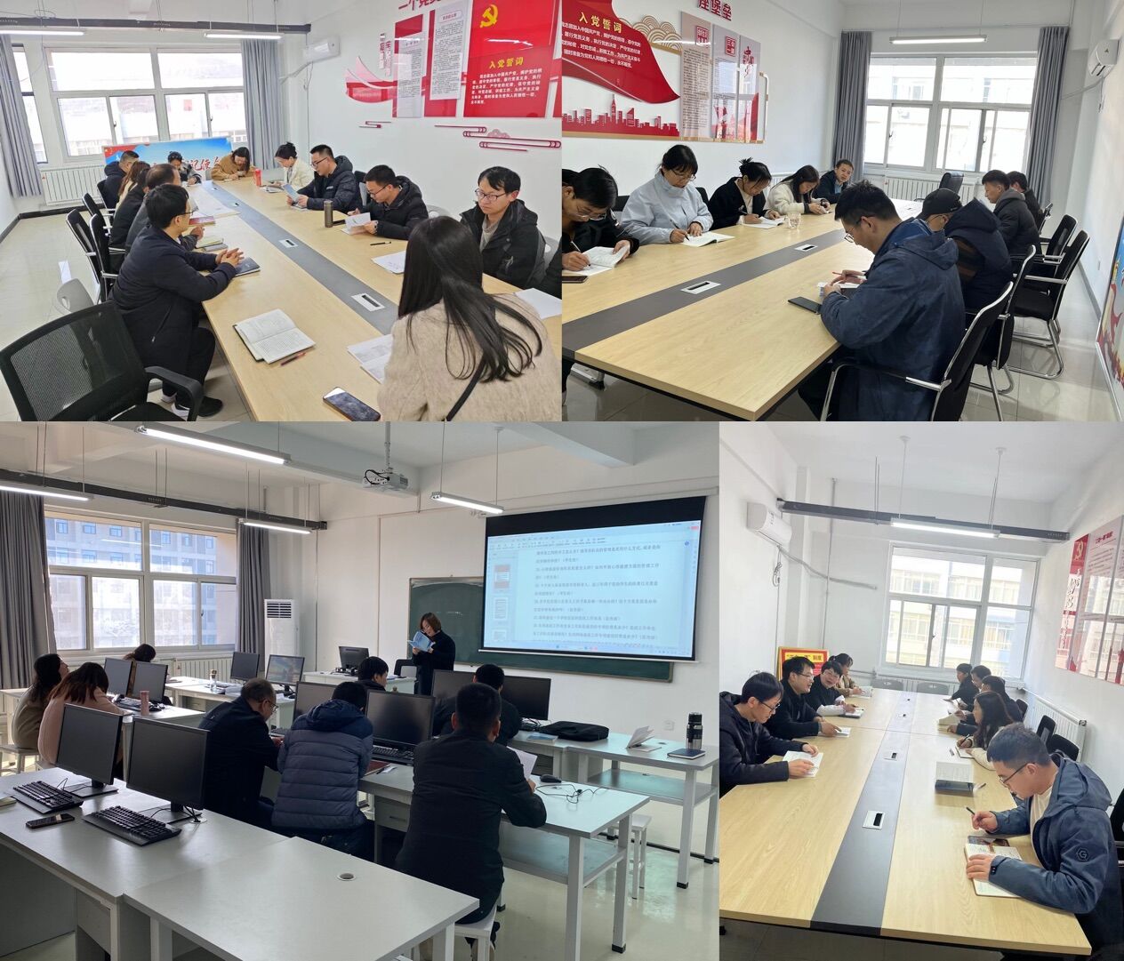 学习期间,电气工程系、电子信息科学系、物理系和人工智能系组织全体师生认知学习讨论“新一轮本科公司产品审核评估应知应会手册42个问题”“本科公司产品第二类审核评估指标体系”。各位系主任对应知应会手册的问题和评估指标体系进行了深入解读,并引导各位教师进行了热烈讨论。