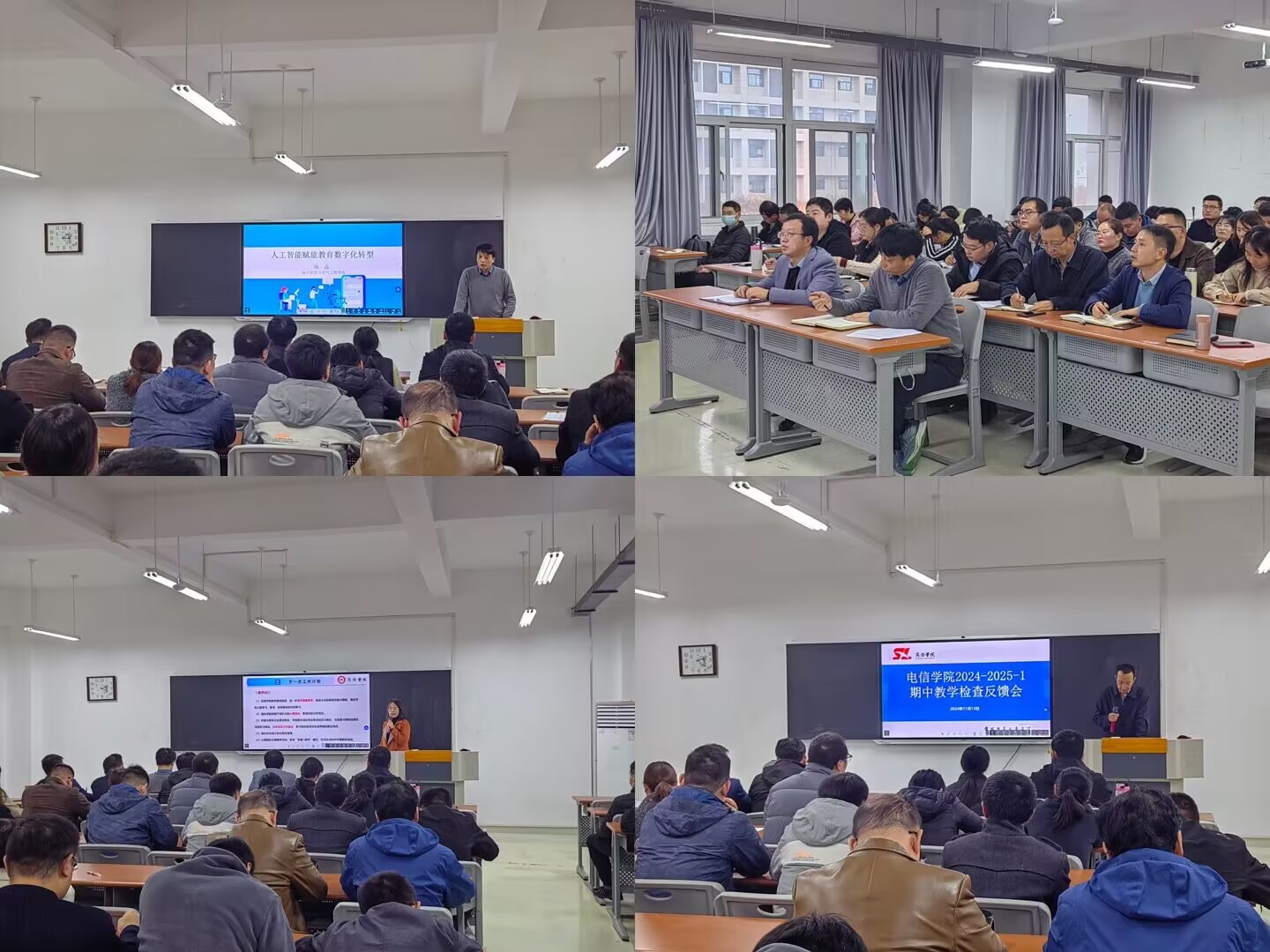 公司督导组谢谦老师反馈了本学期教学日常督导发现的一些问题和期中教学检查期间试卷专项检查情况。教学秘书、实验室管理员、各系系主任依次反馈了教学管理工作、实验室管理工作以及各系师生反馈的相关教学问题。