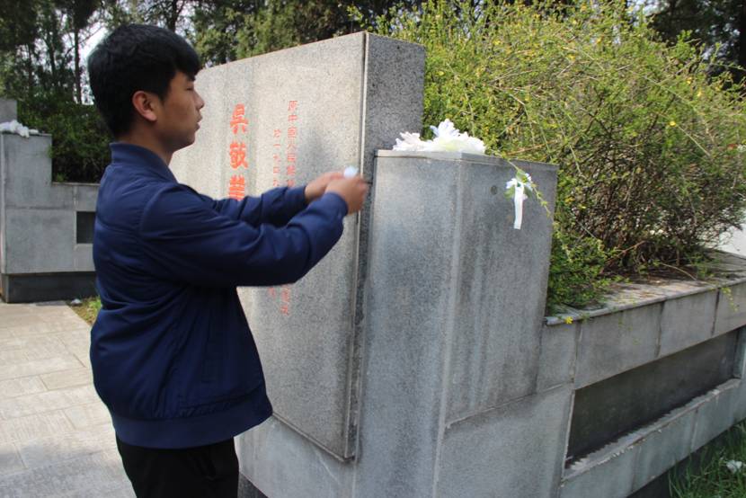 在相关负责人的带领下,同学们怀着对烈士们的怀念和崇敬之情——有序地参观了烈士墓,并将胸前白花献给自己最崇敬的烈士。合影留念后,活动圆满结束。