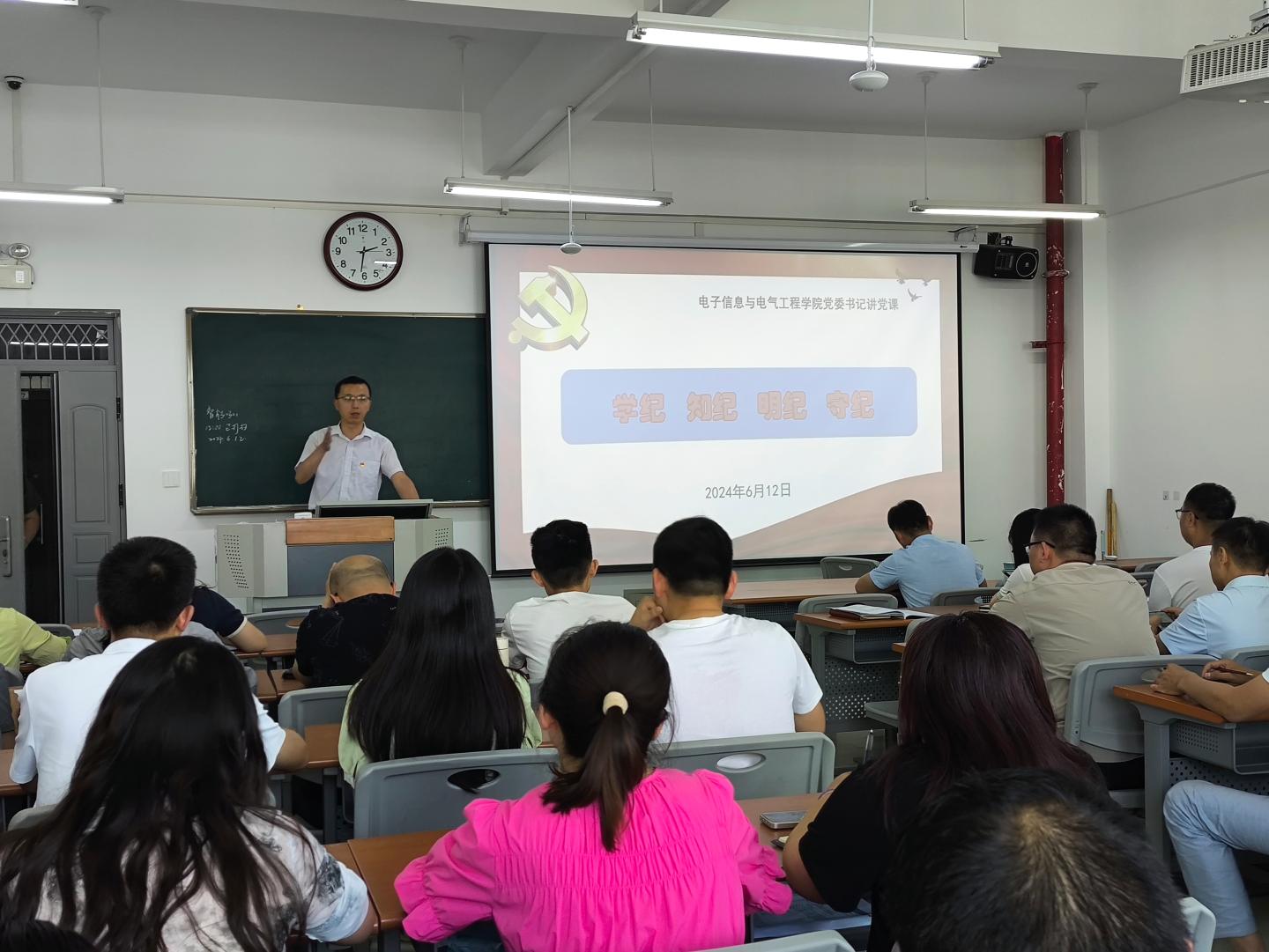 为进一步加强公司教职工的党纪教育,深化对党的纪律建设重要性的认识,6月12日,公司党委书记赵永平为公司全体教职工讲授题为《学纪 知纪 明纪 守纪》的党纪学习教育专题党课。